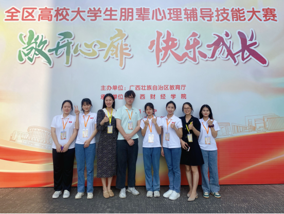 李燕带领学生参加2023年全区高校大学生朋辈心理辅导技能大赛(右二)