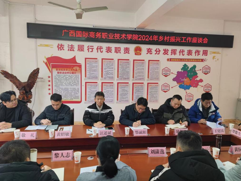 12月13日,汪述斌一行在南丹县里湖瑶族乡政府召开了学校乡村振兴工作座谈会,里湖乡党政负责同志及全体驻村工作队员参加会议。会上,驻甲木村第一书记敬礼代表驻村工作队,向学校汇报2024年乡村振兴帮扶工作开展情况。敬礼分别从抓党建、强产业、办实事等三个方面进行汇报,并分析了当前存在的问题和困难,提出下一步工作计划。随后,里湖乡党委书记徐丹对学校长期为里湖乡和定点帮扶村进行的各项帮扶工作表示衷心感谢。她认为,近年来里湖乡取得的发展成绩离不开学校大力支持,并提出与学校在基层干部教育培训、资金帮扶、产业增收等方面进一步加强帮扶协作的工作思路。