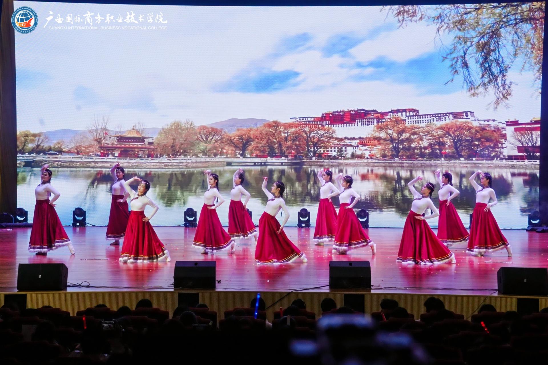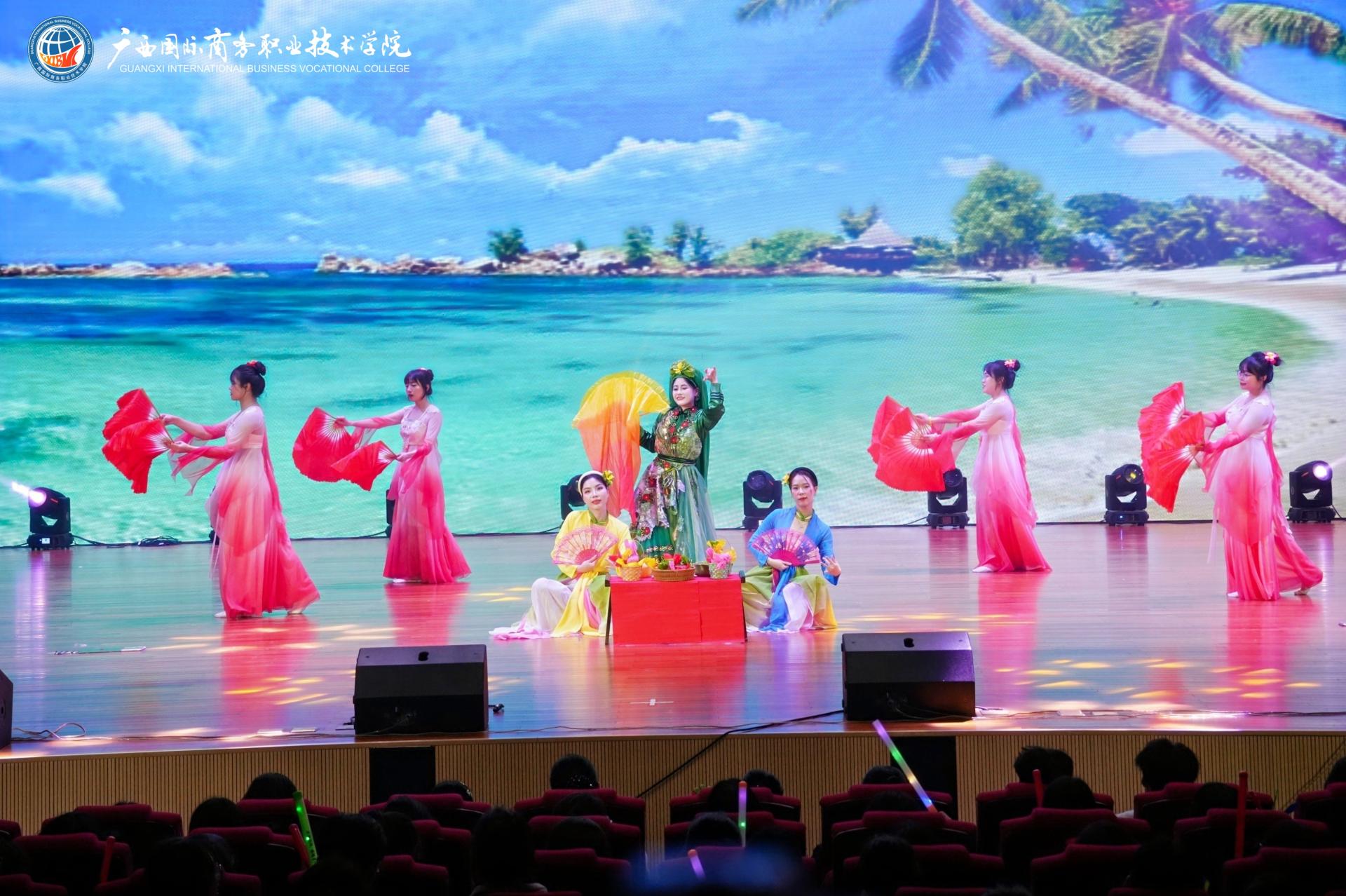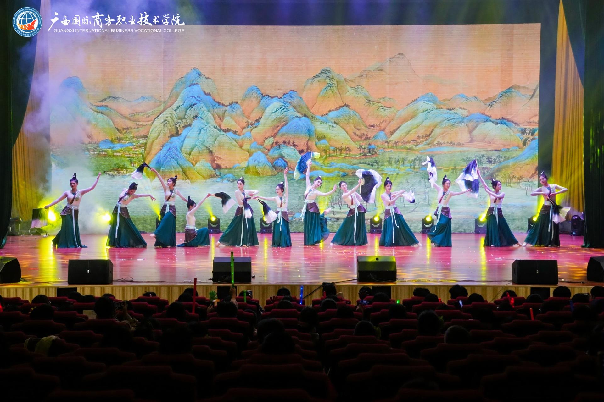 在“丝路扬帆”篇章,国际交流学院的歌伴舞《丝路情》见证着新时代中国通过“一带一路”与各国携手前行的坚实步伐;文化与旅游学院的舞蹈《丝路霓裳》充满异域风情,让不同文化在学校舞者的交流中碰撞出绚丽的火花;南宁市第六职业技术学校的学生舞蹈《藏风美少年》,用充满活力与热情的舞姿,展现了藏族文化的独特风韵;校团委的舞蹈《兰陵王入阵曲》,展现出兰陵王在战场上的飒爽英姿和无畏气魄,诉说那段波澜壮阔的历史;应用外国语学院、现代流通学院和金融经济学院的舞蹈《丝路花语》,不仅呈现出东西方文化的碰撞与交融,更完美诠释了“丝路绵绵传友谊,花语缤纷舞彩虹”的独特魅力。