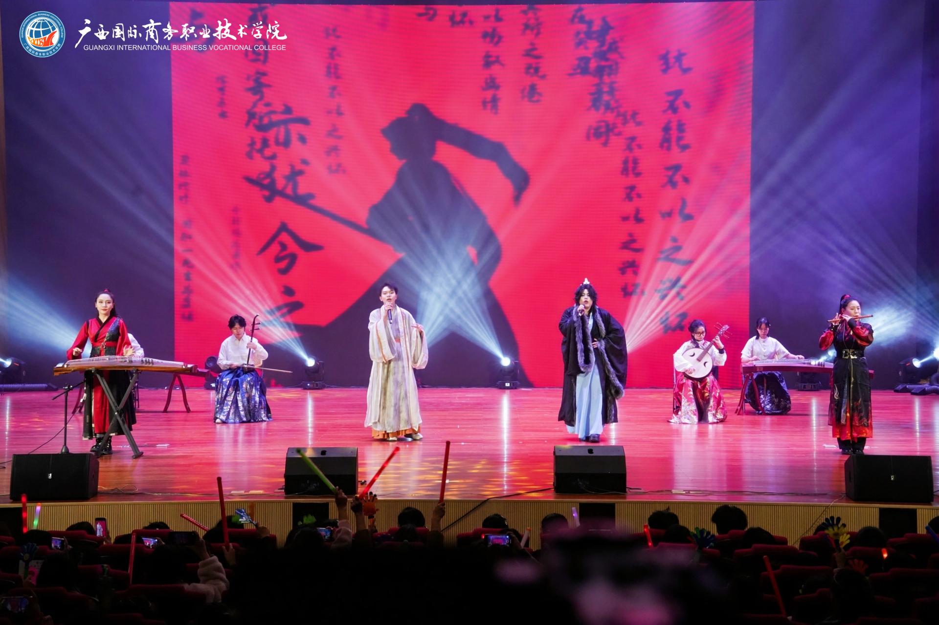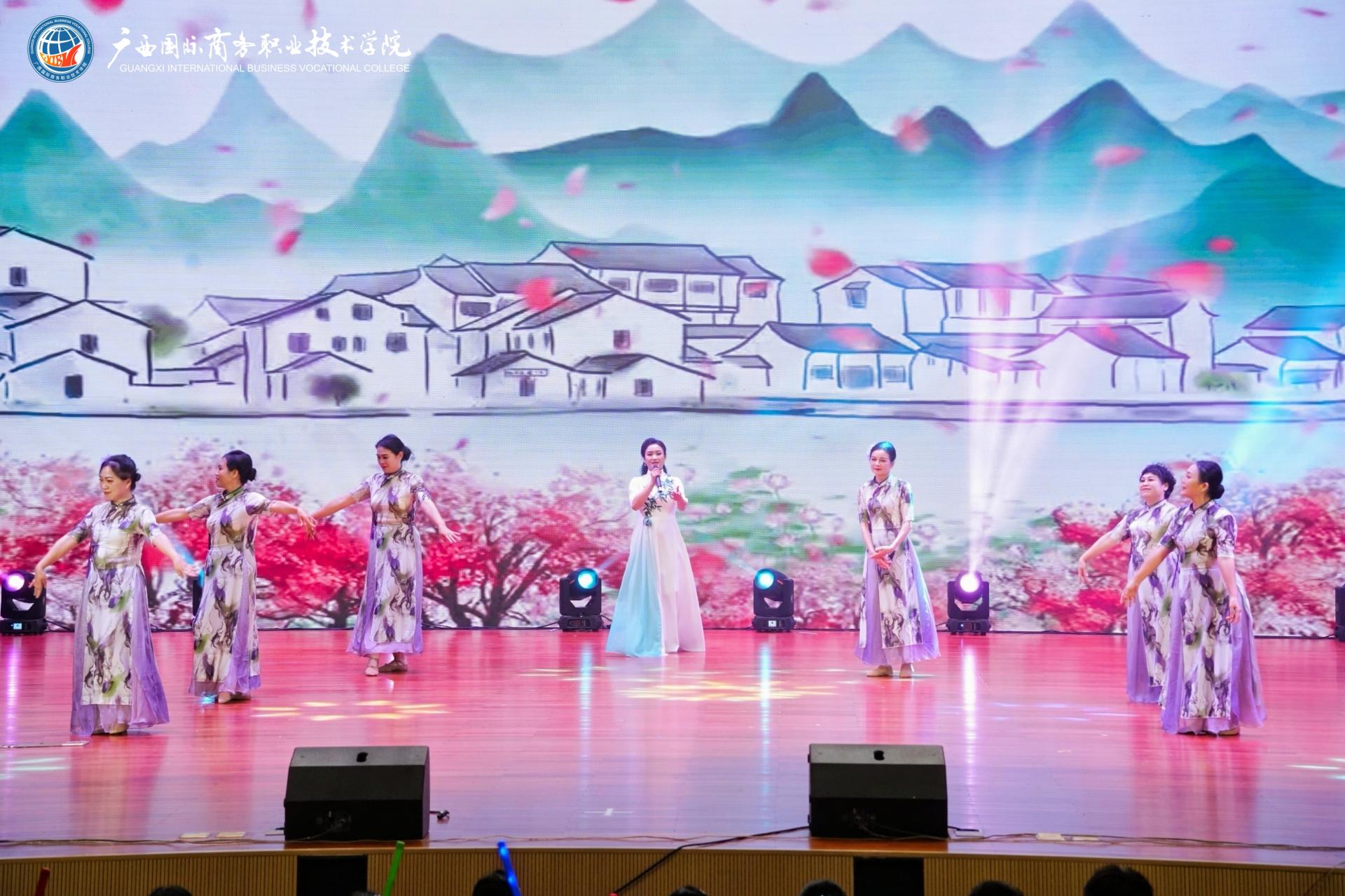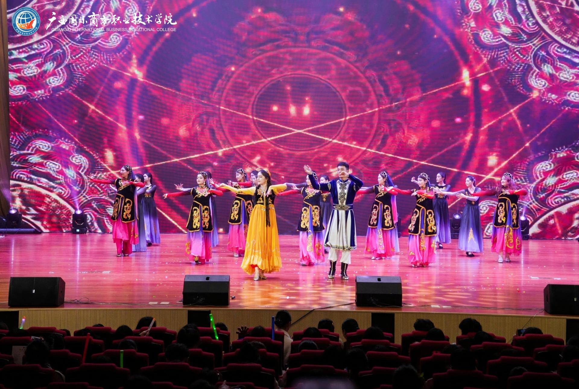在“丝路扬帆”篇章,国际交流学院的歌伴舞《丝路情》见证着新时代中国通过“一带一路”与各国携手前行的坚实步伐;文化与旅游学院的舞蹈《丝路霓裳》充满异域风情,让不同文化在学校舞者的交流中碰撞出绚丽的火花;南宁市第六职业技术学校的学生舞蹈《藏风美少年》,用充满活力与热情的舞姿,展现了藏族文化的独特风韵;校团委的舞蹈《兰陵王入阵曲》,展现出兰陵王在战场上的飒爽英姿和无畏气魄,诉说那段波澜壮阔的历史;应用外国语学院、现代流通学院和金融经济学院的舞蹈《丝路花语》,不仅呈现出东西方文化的碰撞与交融,更完美诠释了“丝路绵绵传友谊,花语缤纷舞彩虹”的独特魅力。