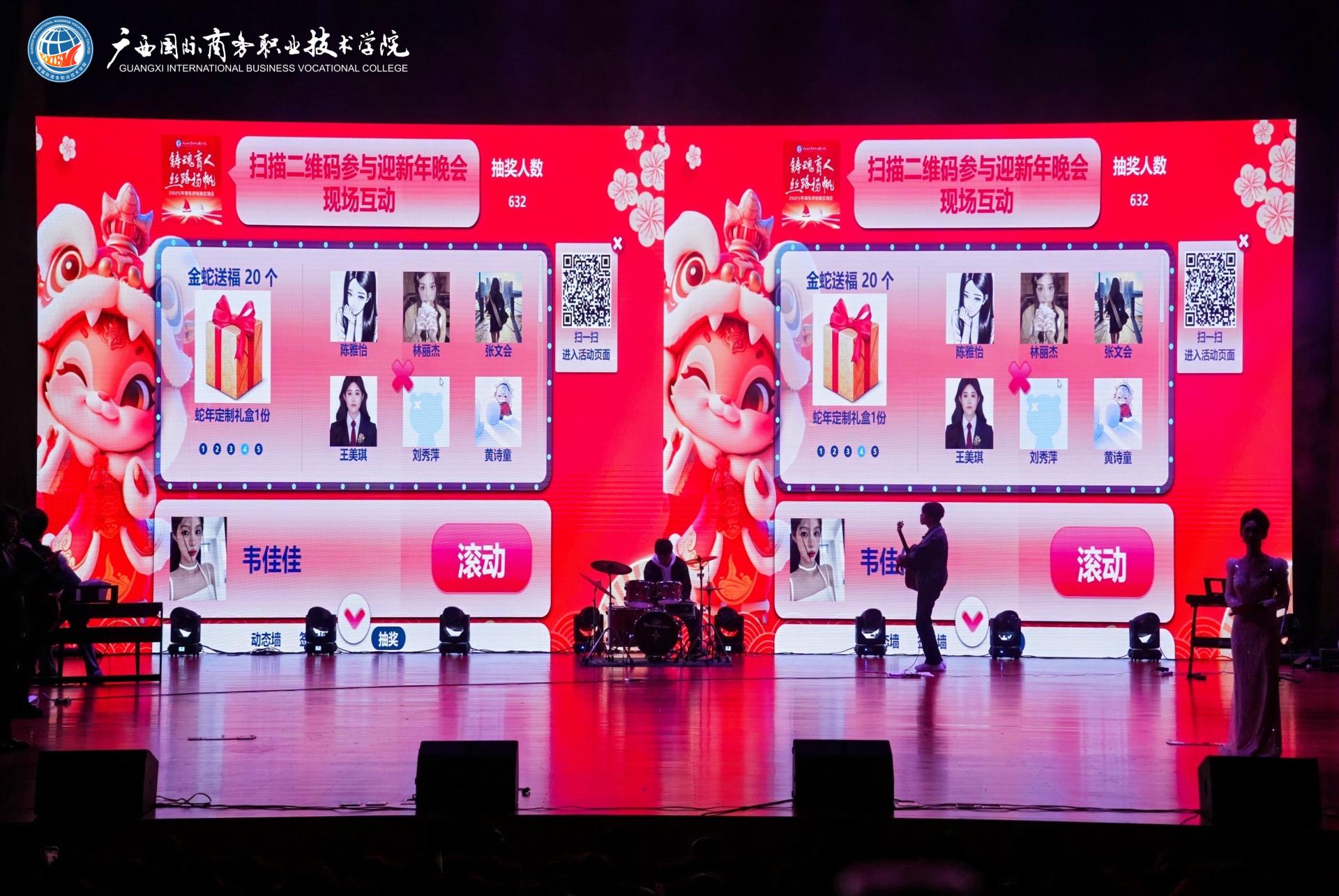 晚会现场还设置了互动抽奖环节,师生们积极参与线上评论、互动,气氛热烈非凡。最终,20名幸运观众赢取了学校为大家精心准备的蛇年定制伴手礼,为晚会增添了一份惊喜与欢乐。