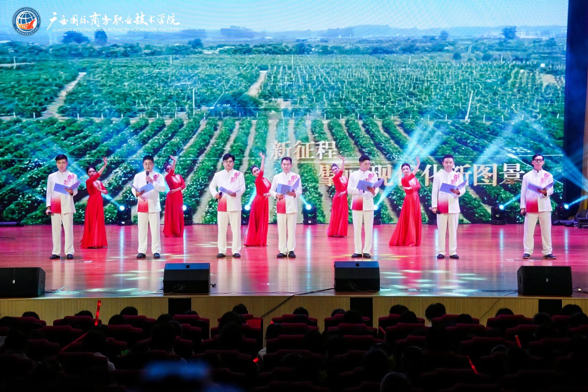 在“铸魂育人”篇章,党委学生工作部、智能与信息工程学院、数字艺术学院的演唱《星光追梦人》,透过歌声传达出梦想的力量,用“星光的指引”拥抱学校的美好未来;南宁市第三职业技术学校的舞蹈《春山好风光》,用灵动的舞姿勾勒出一幅春日盛景;校团委、人文教育学院演唱的《霍元甲》,重温了霍元甲的豪迈风采,展示了独特的爱国主义英雄魅力;马克思主义学院老师们精彩演绎的情景剧《我是一名马克思主义学院教师》,犹如照亮中国特色社会主义发展道路的灯塔守护者,不断传播真理、启迪智慧。