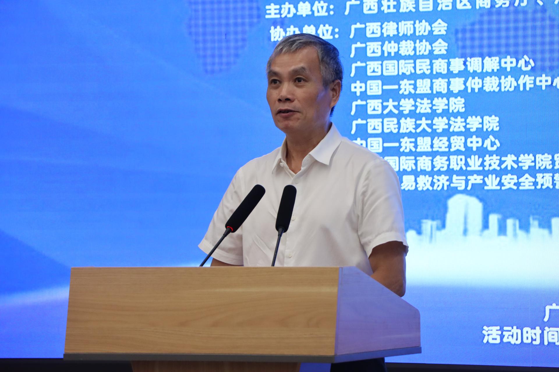 6月5日至6日,由广西壮族自治区商务厅和广西壮族自治区司法厅主办,我校协办的“送法进企业服务月”启动仪式暨培训班在南宁圆满结束。来自自治区商务厅、自治区司法厅、各设区市商务局、司法局、区内重点外贸企业、行业商协会、贸易救济与产业安全预警工作站的同志参加培训。我校党委副书记、贸易救济与产业安全预警工作站站长班克庆,自由贸易试验区政策研究院院长杨素琳及会计学院院长徐爱菲参加本次启动仪式。