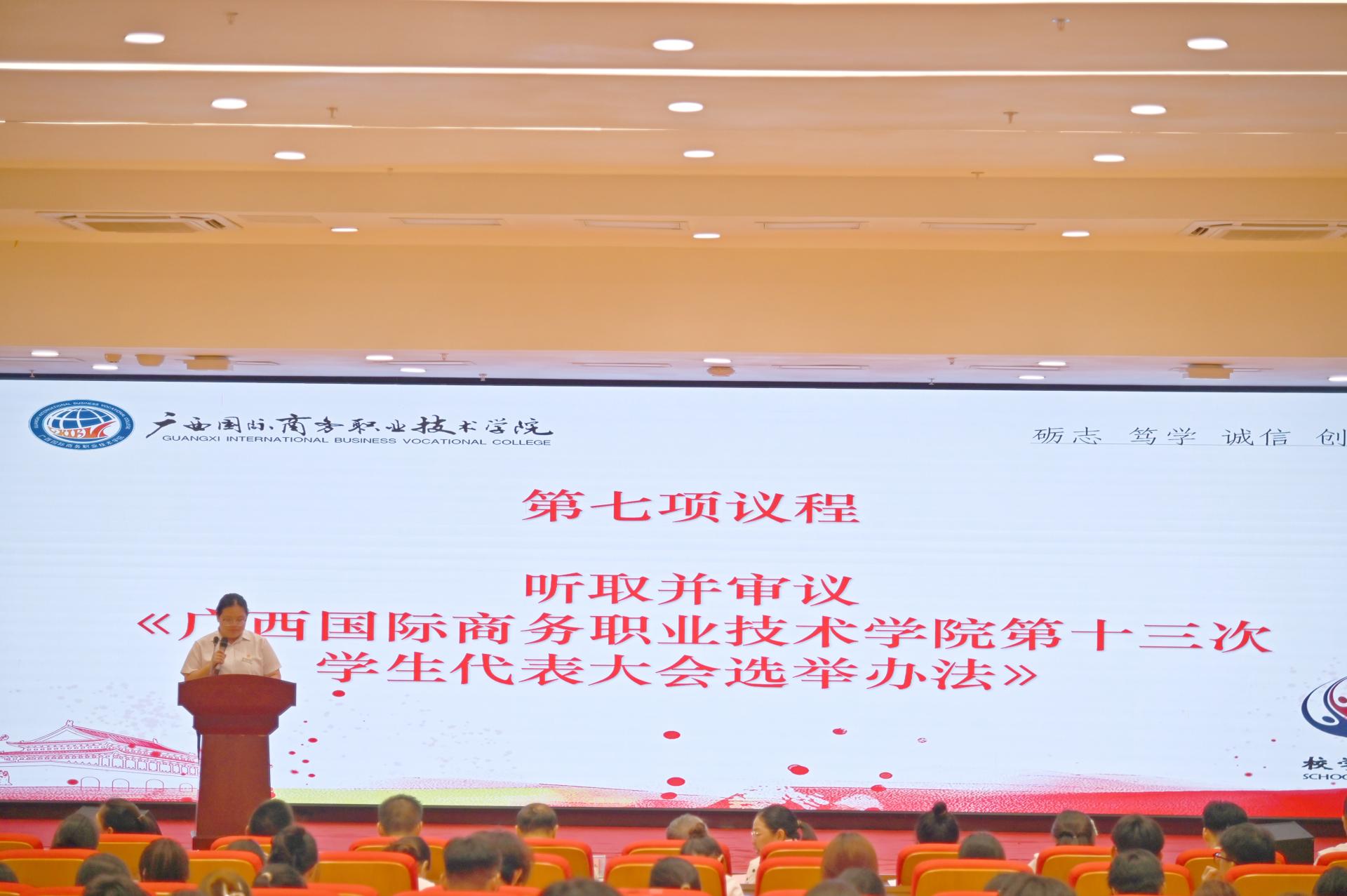 听取并审议《广西国际商务职业技术学院第十三次学生代表大会选举办法》