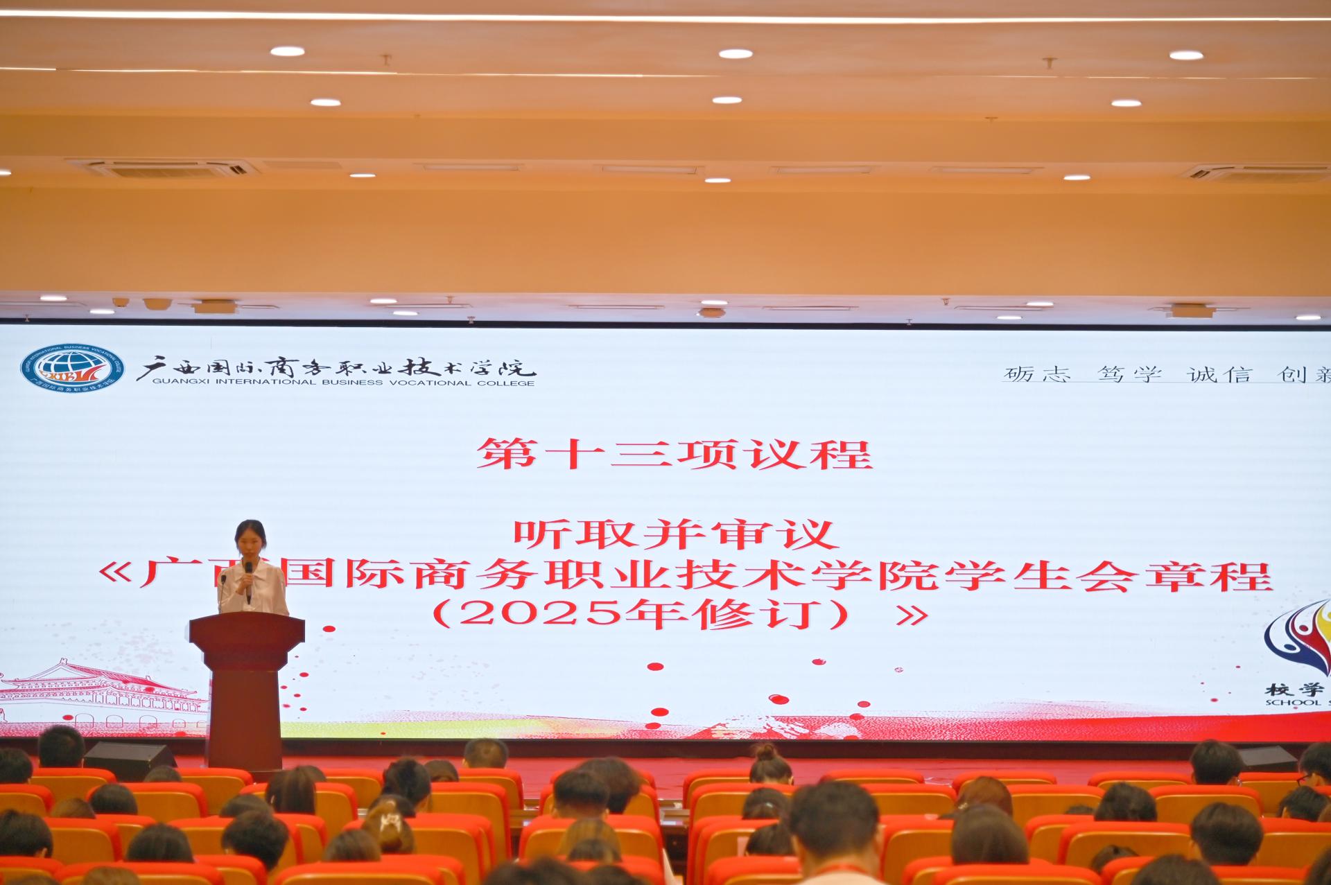 听取并审议《广西国际商务职业技术学院学生会章程(2025年修订)》