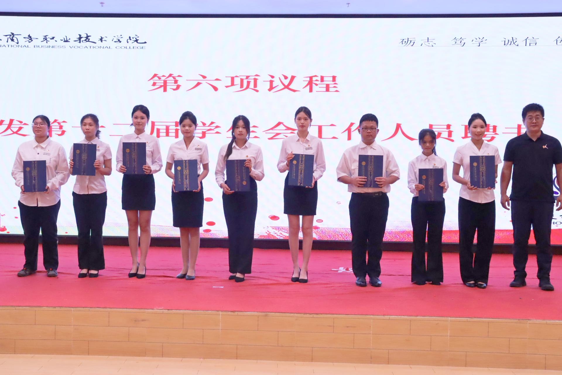 会上,全体学生代表分别听取并审议了《广西国际商务职业技术学院第十二届学生会工作报告》《广西国际商务职业技术学院第十三次学生代表大会提案工作委员会关于提案工作的报告》《广西国际商务职业技术学院第十三次学生代表大会选举办法》《广西国际商务职业技术学院学生会章程(2025年修订)》等。学校团委教师代表为第十二届学生会工作人员颁发聘书。