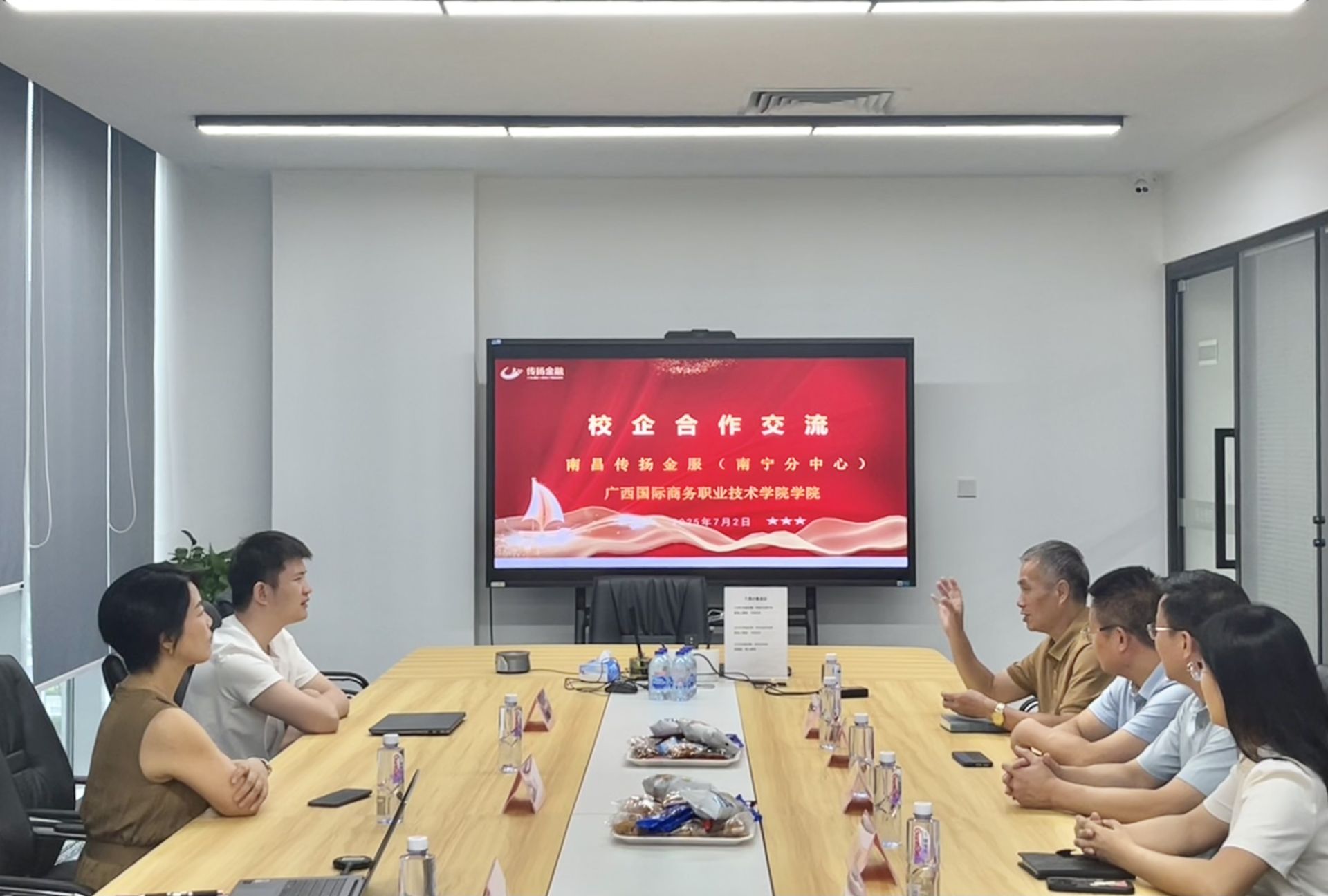 为扎实推进2023级学生实习工作,拓宽毕业生就业渠道,并进一步深化校企合作内涵,7月2日,学校党委副书记班克庆率学校招生就业处处长容博、金融经济学院党总支书记袁维新、院长李凌等一行5人赴南昌传扬金融信息服务有限公司南宁分公司(以下简称传扬金融南宁分公司)开展访企拓岗活动。