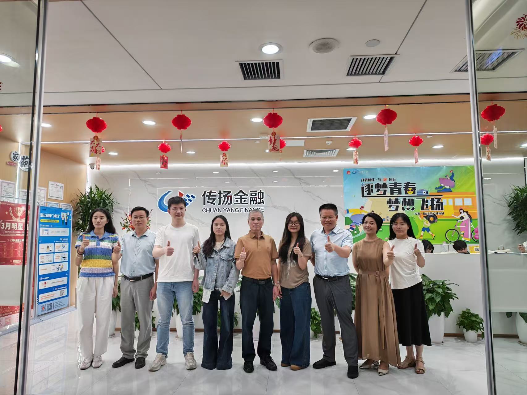 传扬金融南宁分公司招聘负责人许孝国携各业务团队负责人热情接待了班克庆一行。在公司人员的陪同下,学校一行实地参观考察了企业各业务部门,详细了解企业经营模式、业务结构和人才需求状况,随后双方开展了校企合作交流座谈。