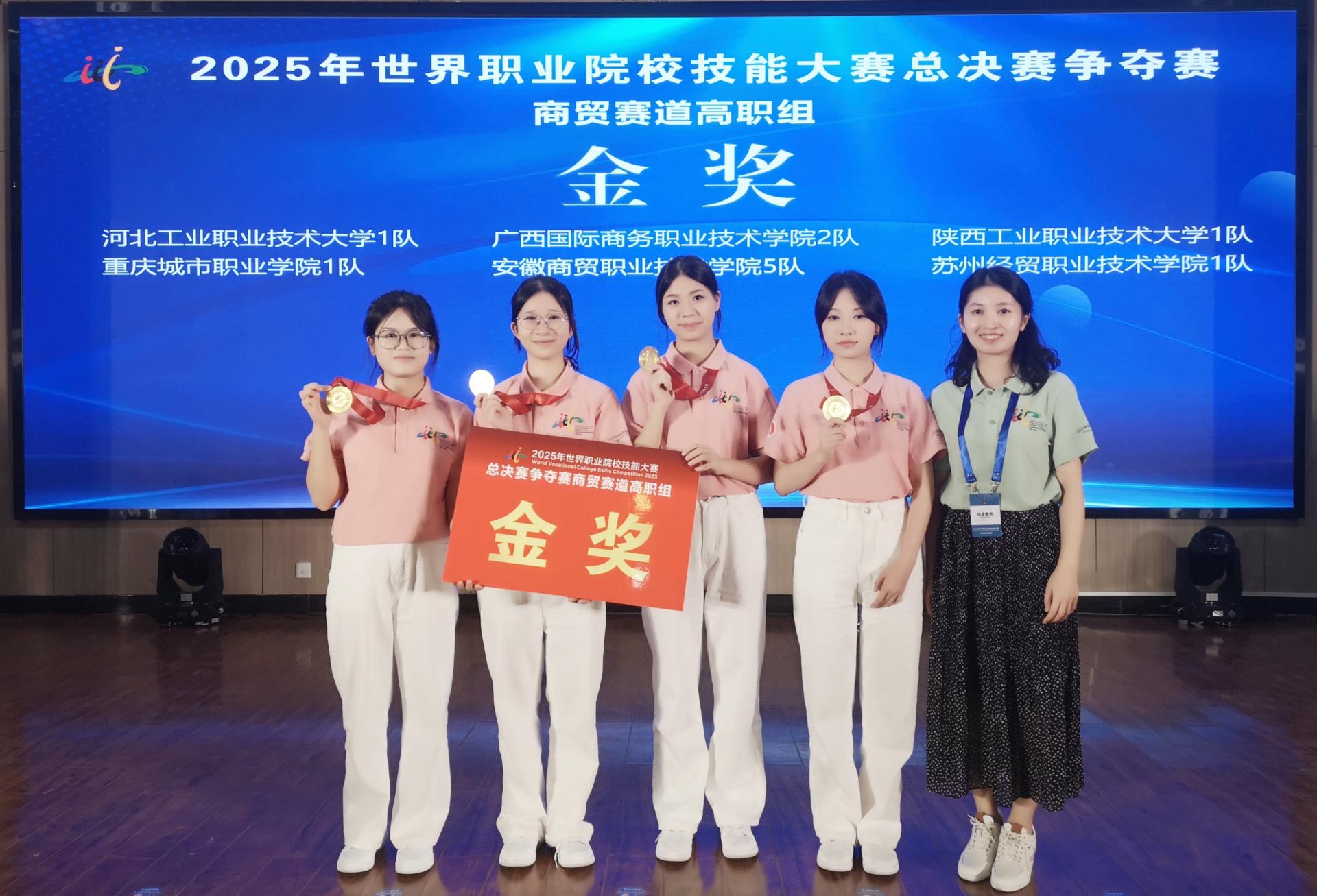 8月25-29日,2025年世界职业院校技能大赛总决赛争夺赛商贸赛道(高职组)赛事在陕西省咸阳市举行,我校国际贸易学院国际经济与贸易、电子商务两支代表队发挥出色,从全国百余所高职院校212支参赛队伍中脱颖而出,双双荣获该赛项金奖!其中,电子商务代表队以赛项前2名的成绩荣获排位赛资格,学校首次挺进世赛排位赛,实现“零的突破”,标志着学校在高素质跨境商务技能人才培养方面取得重大进展。