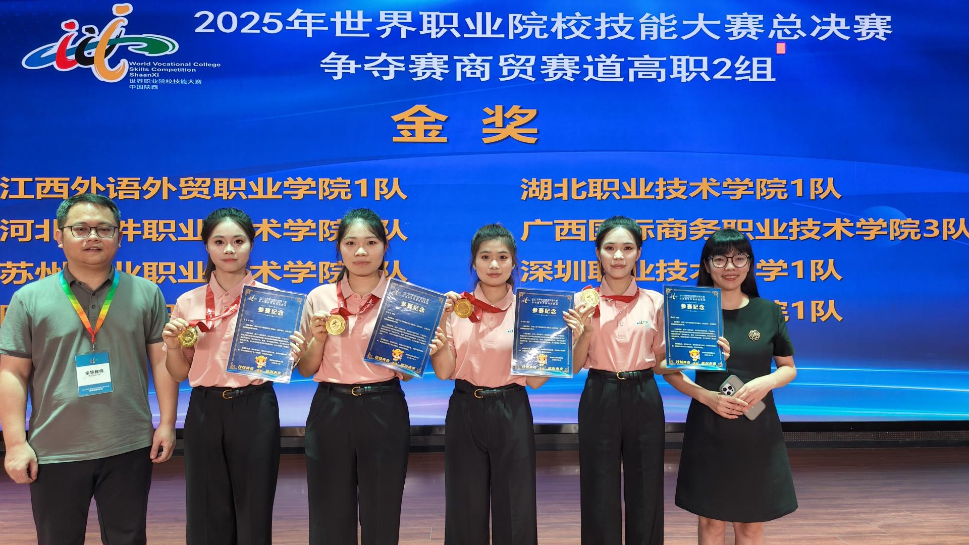 此次大赛荣获双金,是学校持续深化“以赛促教、以赛促学、以赛促改”教育教学改革的重要成果,充分展现了我校在商贸类高技能人才培养方面的显著成效与领先优势。学校将进一步加大支持力度,完善竞赛选拔与激励机制,鼓励更多师生在国内外舞台上展示专业风采、贡献创新智慧,为广西乃至全国外贸高质量发展持续输送优秀人才!