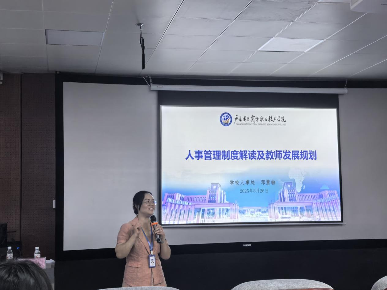 人事处(教师发展中心)副处长邓慧敏解读人事管理制度与教师发展规划,为新入职人员职业成长指明路径;广西技术能手李向敏分享“‘双师型’教师的成长路径与产教融合实践”,从教学能手到行业专家的进阶经验,为新入职人员投身产教融合提供借鉴;学校“金雁”教学名师吴迅聚焦“高职教师的创新思维与教学创新实践”,以创新教学案例启发新入职人员突破传统,提升课堂活力与质量。