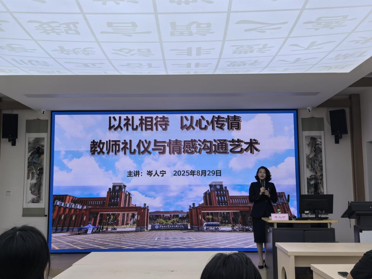 文化与旅游学院岑人宁在东盟校区国学文化馆开展“以礼相待,以心传情:教师礼仪与情感沟通艺术”培训,系统讲解教师职业礼仪,从日常教学中的仪容仪表,到行政工作的职业礼仪规范,助力新入职人员快速掌握要领,为后续开展教育教学工作筑牢礼仪基础。在多媒体教室,新入职人员认真学习了教室设备的基本使用方法及常见故障排查等实操内容,为高效开展多媒体辅助教学提供保障。