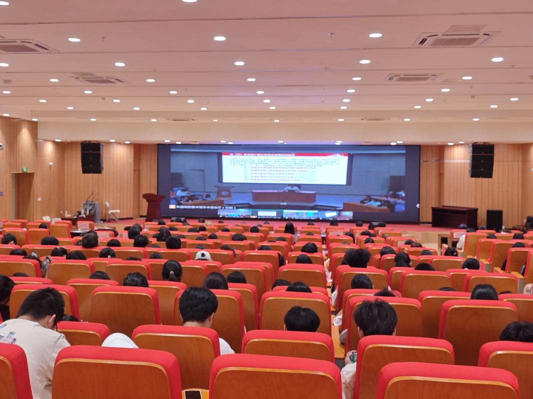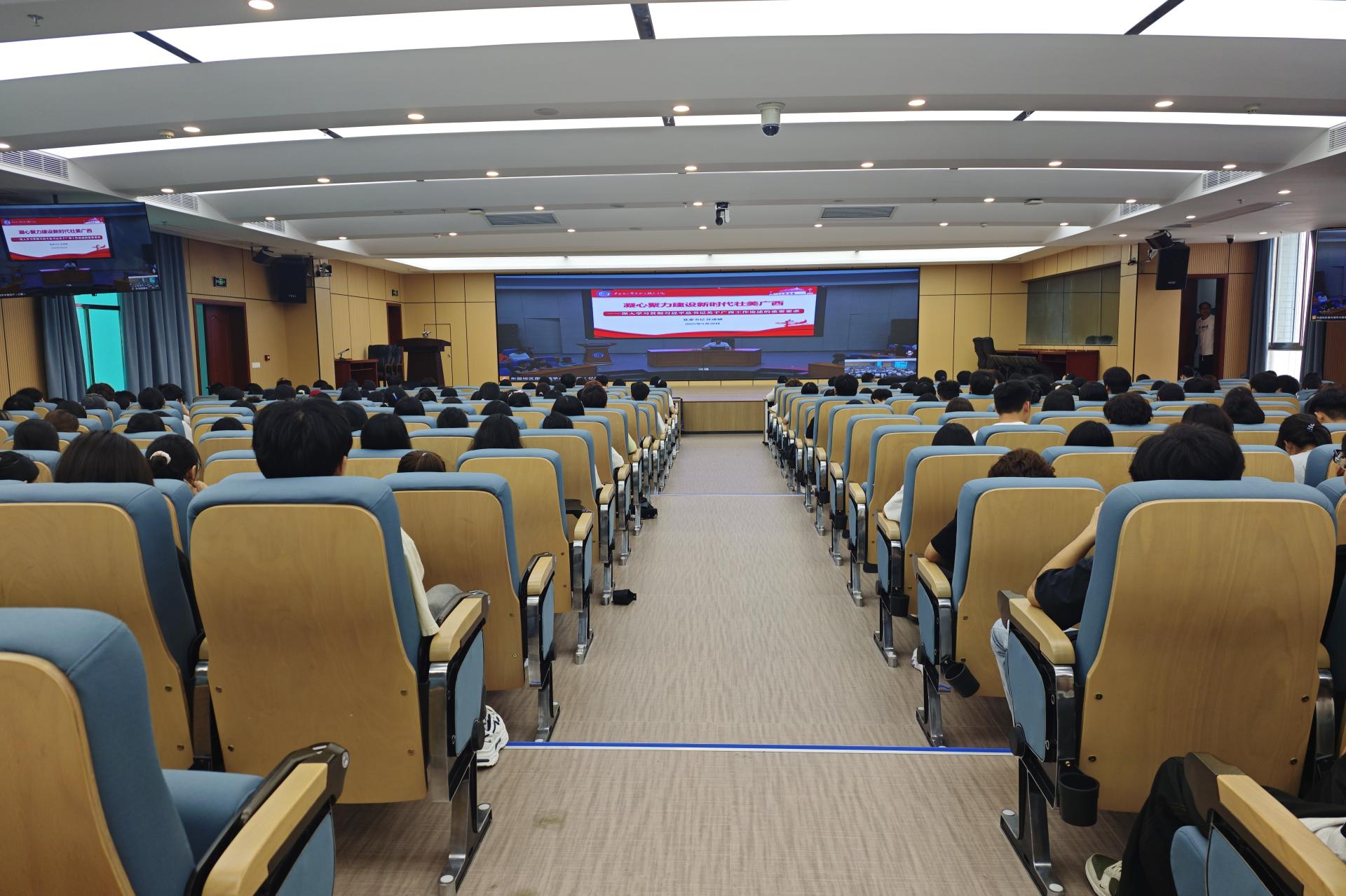 宣讲报告采用主会场和分会场相结合、线上线下结合的方式进行,部分师生代表在东盟校区图书馆报告厅主会场聆听报告。其他学院青年师生在各分会场聆听报告。