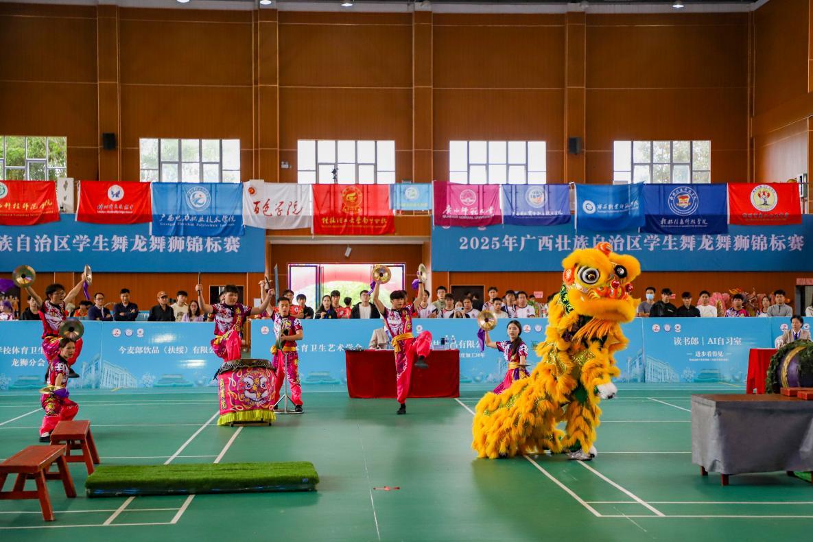 11月6日,由广西学校体育卫生艺术学会主办的2025年广西壮族自治区学生舞龙舞狮锦标赛在桂林理工大学(南宁分校)圆满落幕。经过激烈比拼,我校龙狮代表队在比赛中发挥出色,一举夺得高职高专组女子规定套路第一名、女子自选套路第一名以及女子传统南狮第二名,创下“两金一银”的优异成绩。其中,自选套路与规定套路两项冠军,均为我校龙狮队历史最佳战绩!