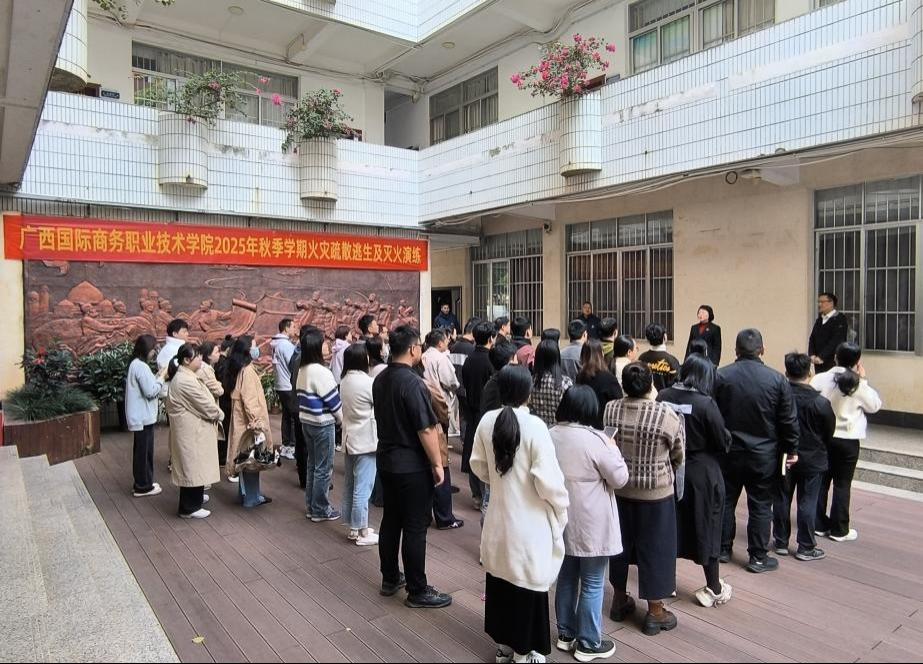 本次演练活动得到了西乡塘消防救援大队专业力量的大力支持,副大队长张滨成担任主讲,为师生带来了系统全面的消防安全知识讲解。随着刘杰英宣布“演练正式开始”,尖锐的消防警报声瞬间响彻校园,演练进入实战疏散环节。