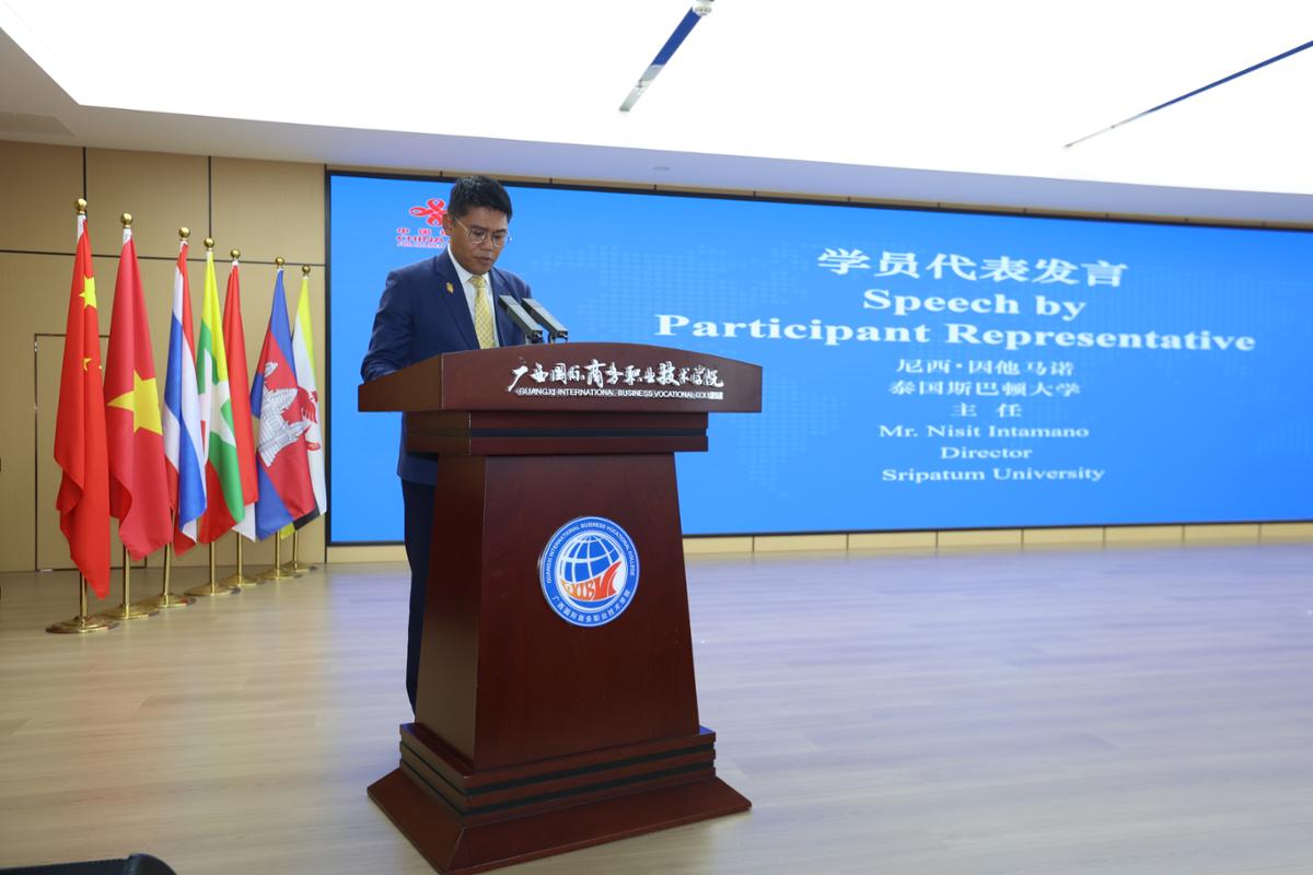陆纯梅向全体学员表示热烈祝贺。她指出,本次研修班以商事法律交流为纽带,搭建起中国与东盟国家规则互鉴、理念融合的桥梁,有效促进了区域商事法律实践的务实合作。她强调,依托国际商务办学特色,我校将持续为商事法律研究提供平台与智力支持。她希望学员们未来与广西及中国商法机构拓展多维合作,共同推动中国—东盟商事法律合作迈向新高度,助力区域经贸往来走向更规范、高效、可持续的未来。