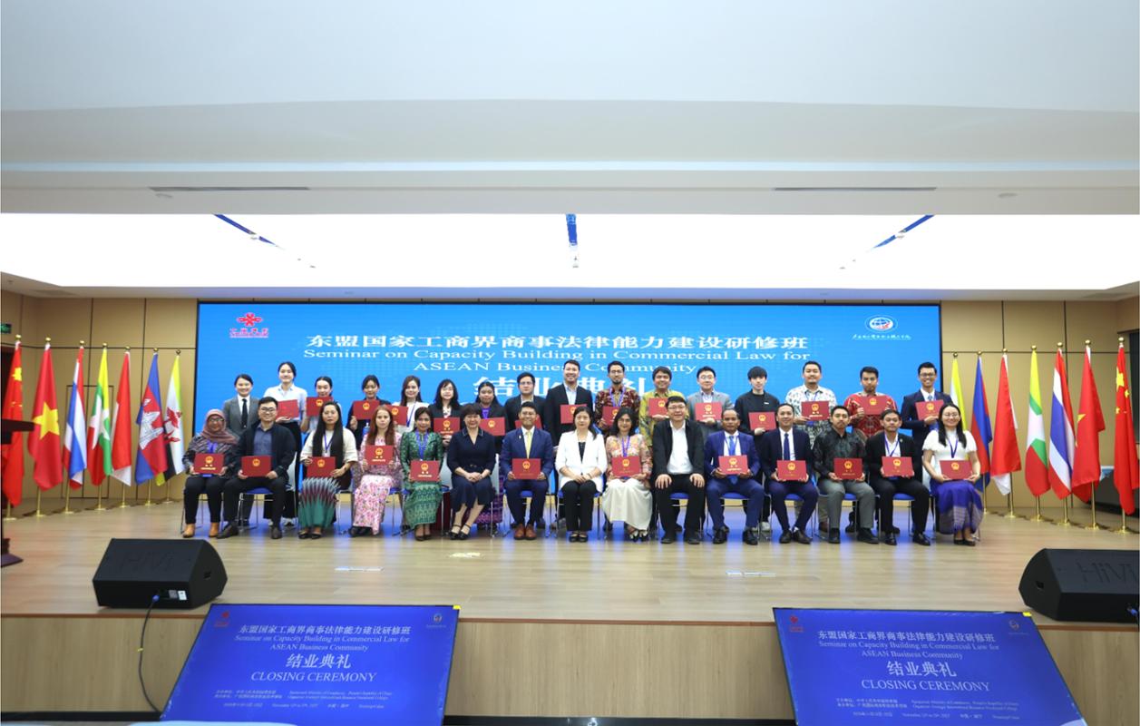 11月25日,由商务部主办、我校承办的“东盟国家工商界商事法律能力建设研修班”在我校圆满结业。我校副校长陆纯梅、广西贸促会法律事务部部长聂新宇出席典礼并发言。来自文莱、柬埔寨、印度尼西亚、缅甸、泰国、越南等国的27位学员参加结业典礼。