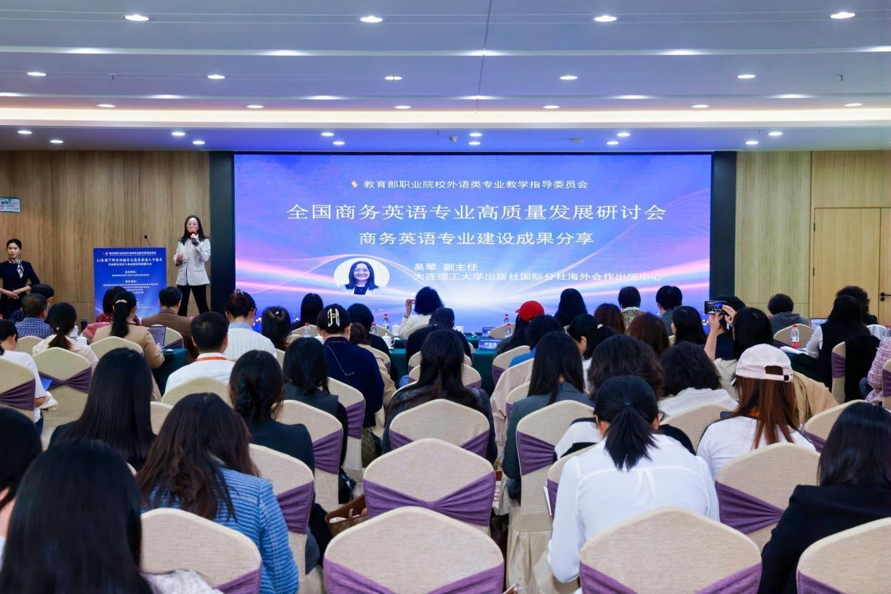 11月28日下午,商务英语专业建设成果分享会如期举行,来自全国各地8所院校及出版机构的代表同台分享宝贵经验,该环节由教育部职业院校外语类专业教学指导委员会委员王朝晖主持。长沙民政职业技术学院戴日新以“一核五维五融共育德技双修:高职商务英语专业人才培养模式构建与实践”为题,呈现了系统完整的人才培养体系;南京工业职业技术大学阮晓文分享了“以复合求生存,以特色引领发展——语言类专业转型发展的实践探索”,为专业转型提供了清晰路径;江西财经职业学院王胜华紧扣跨境电商行业趋势,详解了创新创业人才培养的具体实践;广州工程技术职业学院吴寒梳理了产教融合背景下商务英语专业建设的有效路径;广东农工商职业技术学院易勇以“五金”改革为核心,分享了高职外语内涵建设的实践经验;河北对外经贸职业学院张伯玮从国际交流视角拓展了商务英语专业的价值维度;大连理工大学出版社副主任吴琴围绕“数智赋能,融合出版”,介绍了商务英语教学资源建设的创新探索;我校应用外国语学院院长莫颖则以“AI赋能数字边贸新动能 桂海丝语联通产教未来”为题,展示了该校依托东盟区位优势实现产教融合的创新模式。八位代表的分享涵盖人才培养、专业转型、资源建设、国际合作等多个维度,为参会者提供了丰富的实践参考。