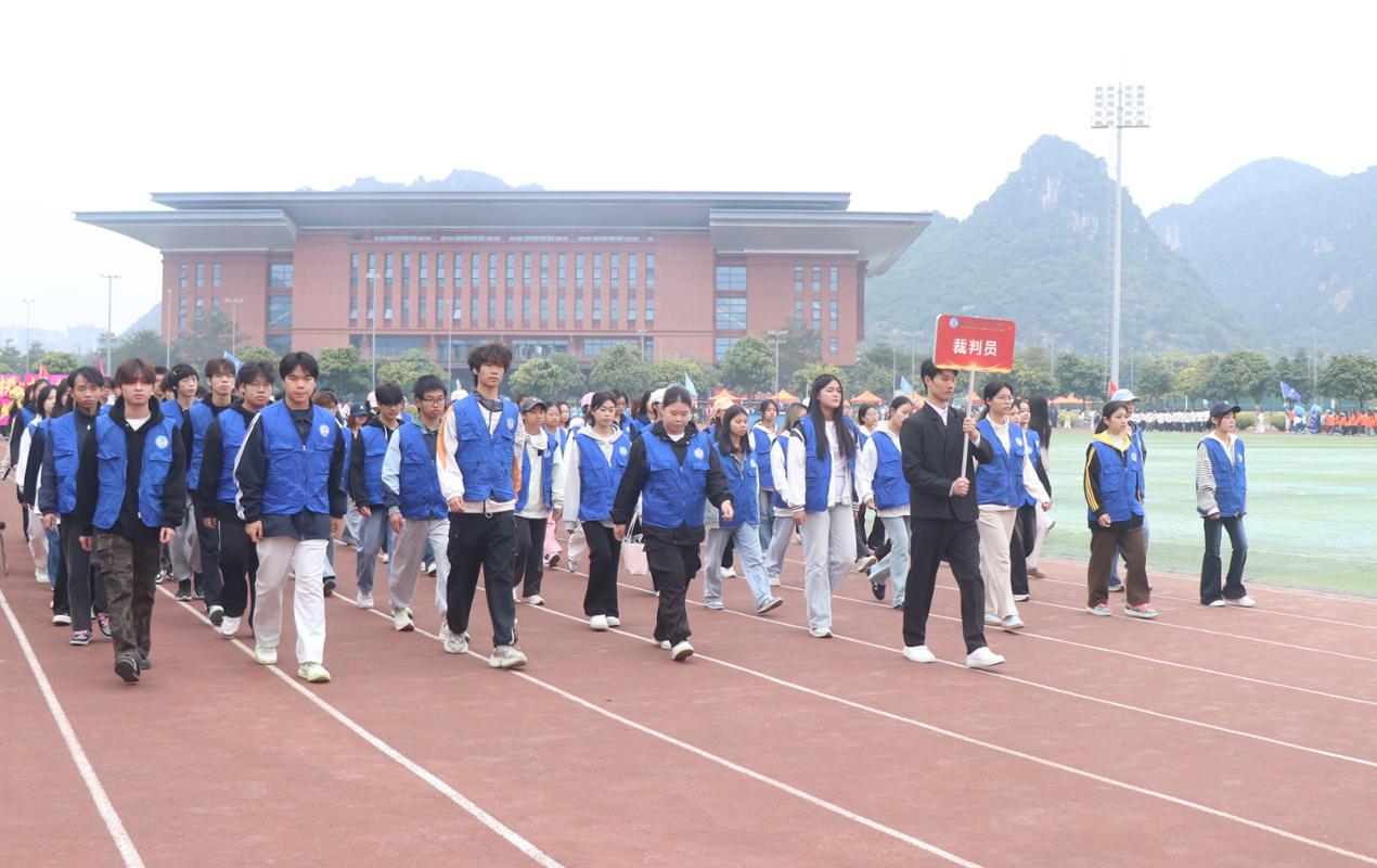 刘杰英在开幕辞中指出,学校紧扣“教会、勤练、常赛、浸润”主线,推进四大体育提升工程,助力学生在体育锻炼中强健体魄、健全人格。近年来,学校体育成果丰硕:2025年学生在国家级、自治区级赛事中获33项奖项,体育舞蹈队摘得全国大学生体育舞蹈锦标赛团体冠军,广西学运会参赛选手48人摘牌,奖牌率达94%,彰显国商学子风采。她强调,六十华诞是里程碑更是新起点,需弘扬“更快、更高、更强、更团结”的奥林匹克精神,以体育为纽带凝聚力量、激发干劲,赋能学校高质量发展。她提出四点希望:运动员安全参赛、顽强拼搏;裁判员公平公正、严谨执裁;工作人员热情服务、保障到位;观赛师生遵守秩序、文明助威。