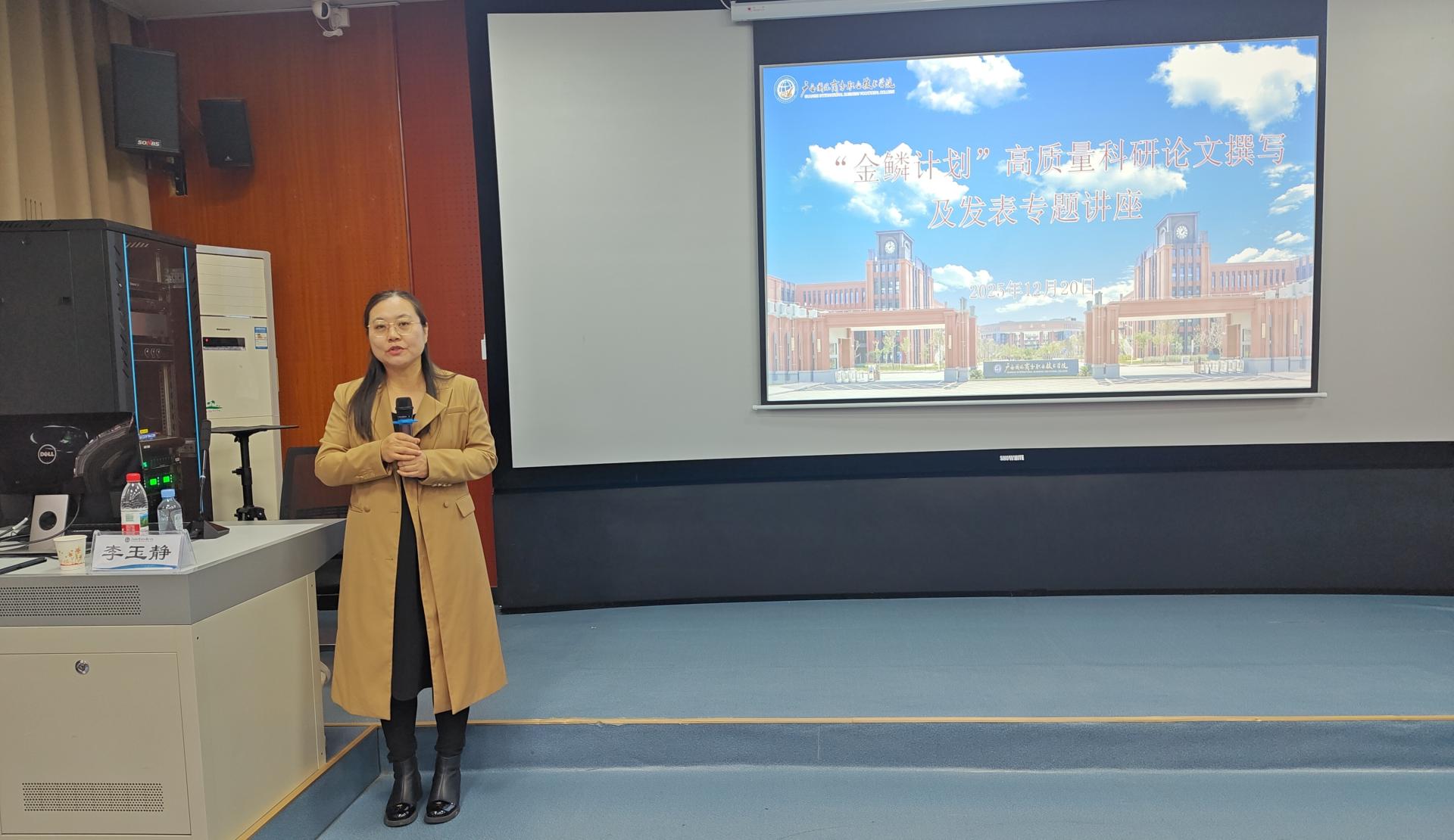 为紧扣职业教育改革发展趋势,进一步助推学校科研工作高质量发展、提升职业教育领域科研论文的优质产出水平,学校于12月20日邀请吉林工程技术师范学院职业技术教育研究院、职业教育评价研究院副院长、《职业技术教育》副总编李玉静研究员来校作专题讲座。学校副校长陆纯梅出席本次讲座,全校80余名教师参加。
