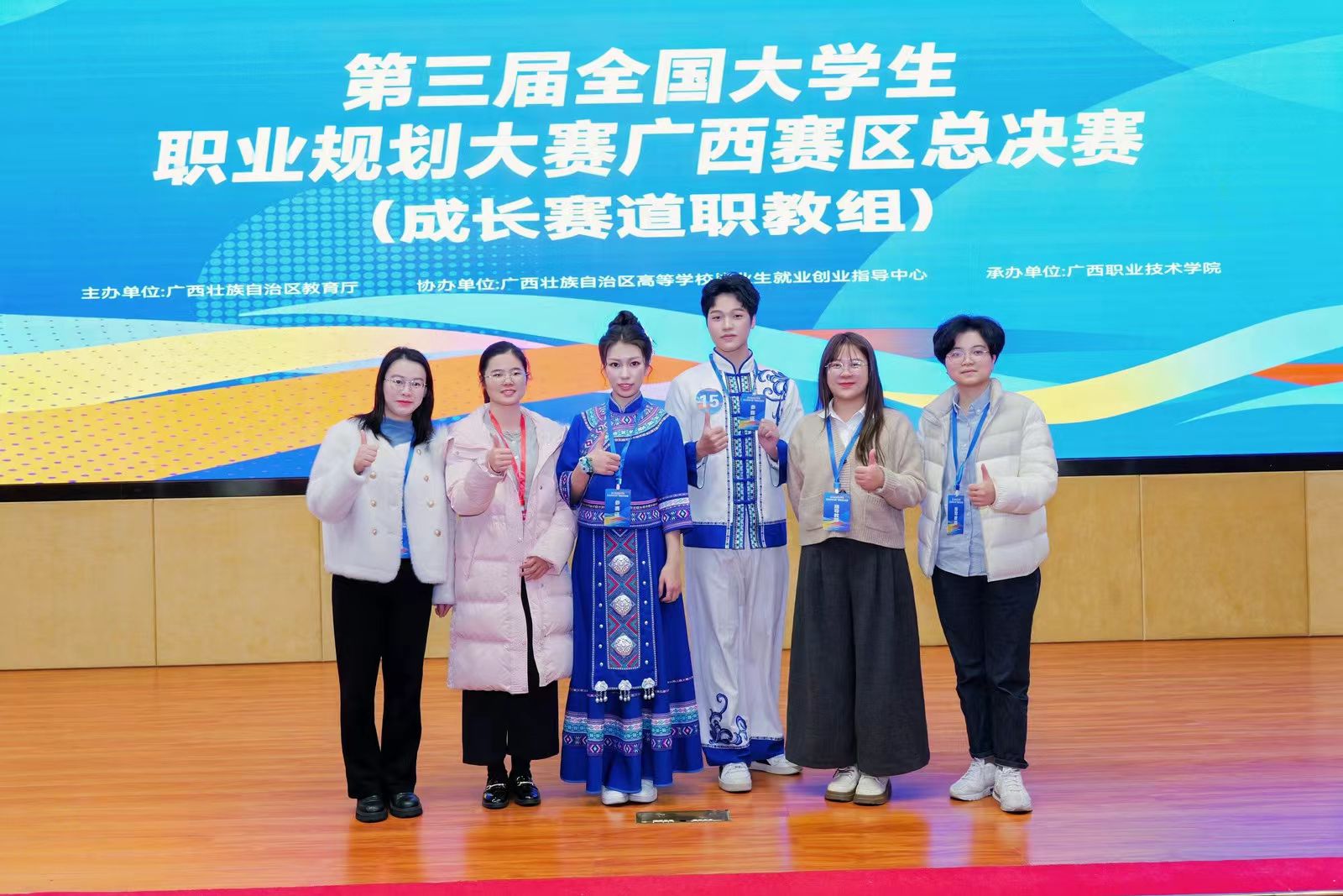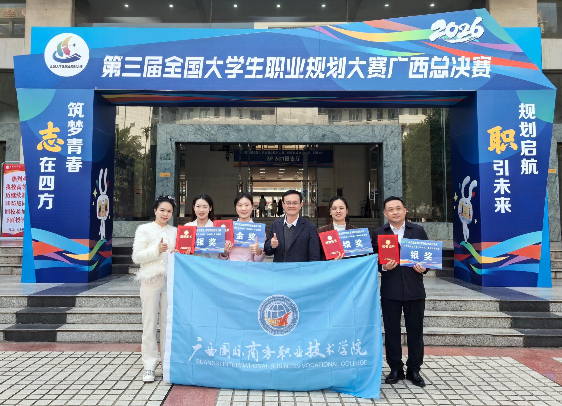 近日,由广西壮族自治区教育厅主办的第三届全国大学生职业规划大赛广西赛区总决赛职教组的比赛圆满结束。我校参赛队凭借扎实的专业素养和出色的职业规划能力,斩获佳绩。课程教学赛道中,李朋团队、黄凤花团队双双荣获银奖;就业赛道中,2023级婴幼儿托育服务与管理专业的韦宣伊同学获得金奖,2023级大数据与会计专业的孙娜同学获得银奖;成长赛道中,2024级中小企业创业与经营专业的李磊同学和2024级市场营销专业的唐海燕同学分获银奖。其中,韦宣伊将代表我校入围国赛“金种子”训练营,全力冲刺全国总决赛资格。