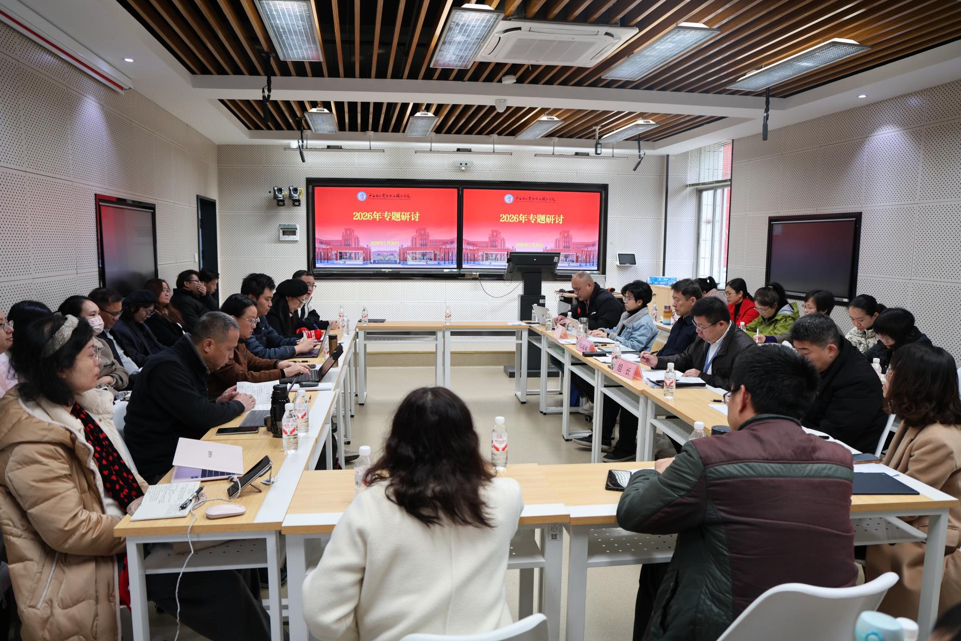 为深入贯彻落实党的二十届四中全会精神和2026年全国教育工作会议精神,进一步统一思想、凝聚共识,科学谋划学校“十五五”发展蓝图,推动学校各项事业高质量发展,我校于2026年1月24日至26日成功举办了2026年干部培训暨专题研讨活动。全体学校领导、中层干部、三层机构干部、副高以上职称人员、教研室主任和专业带头人、国商菁才”培养计划和辅导员训练营导师和学员等近四百人参加培训。