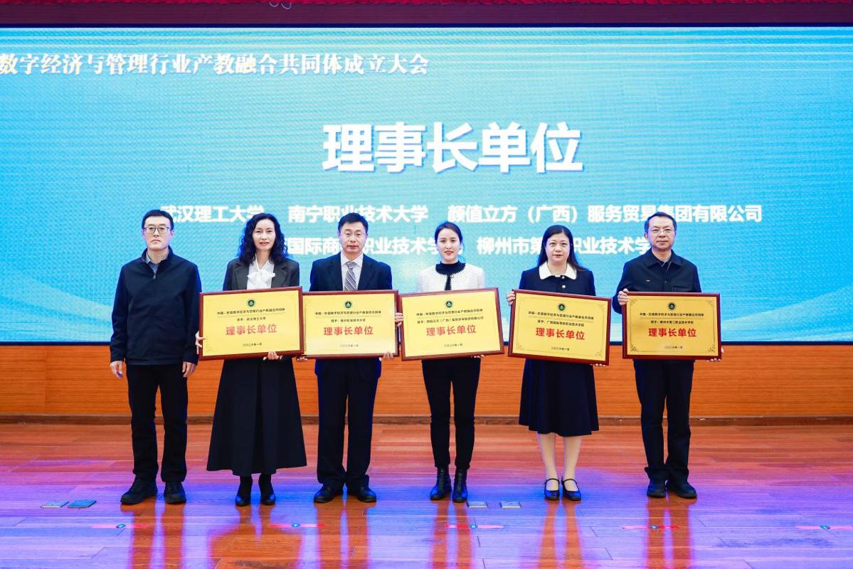 本次成立大会得到全国电子商务职业教育教学指导委员会、广西壮族自治区教育厅、广西壮族自治区商务厅等相关部门的悉心指导。共同体由南宁职业技术大学、武汉理工大学、颜值立方(广西)服务贸易集团有限公司、广西国际商务职业技术学院、柳州市第二职业技术学校共同牵头组建,汇聚了国内外186家单位参与,拟构建开放、协作、创新的产教融合机制,为中国与东盟数字商贸等领域合作注入强劲动力。