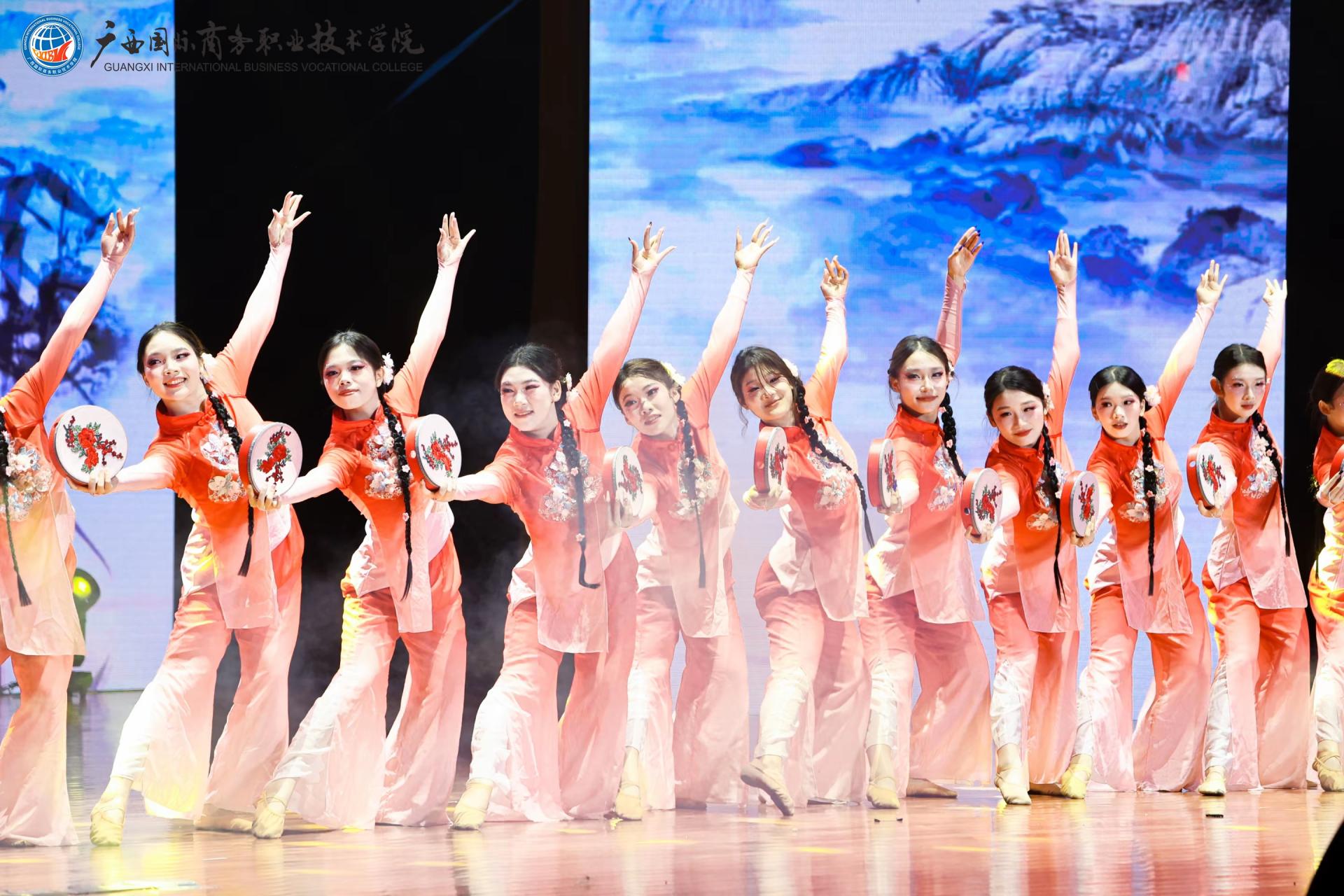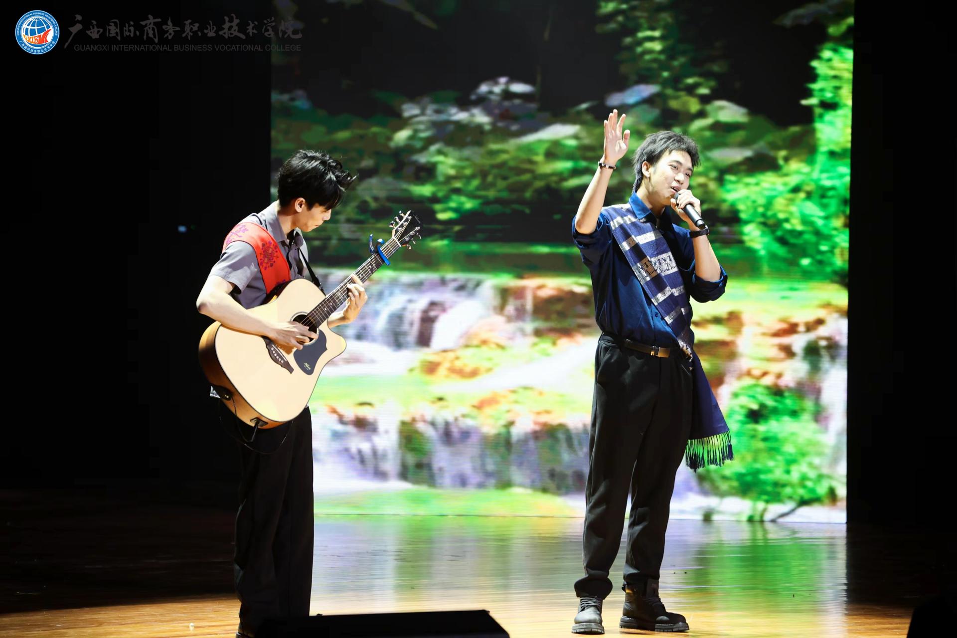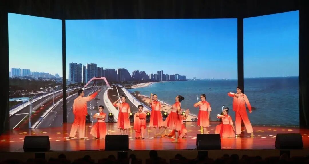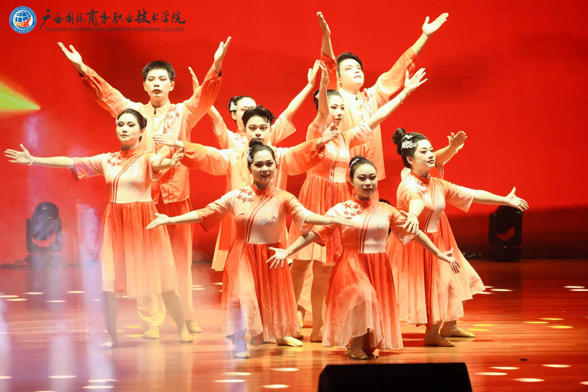 下篇《商通天下‧丝路扬帆》放眼国际化办学格局,舞蹈《锦绣情》,师生以灵动舞姿演绎跨越山海的深情厚谊,展现了学校与海外院校合作交流的丰硕成果与对未来的美好憧憬。歌舞《桂海情》则通过师生同台献艺,融合多语种演唱与跨文化舞蹈,生动呈现了学校在外语教学、国际交流领域的创新实践。此外,合唱《我爱你中国》以磅礴气势激荡爱国情怀,原创歌曲《山海同唱》以悠扬旋律共贺华诞,将展演推向高潮,展现了师生胸怀家国、放眼世界的格局与担当。