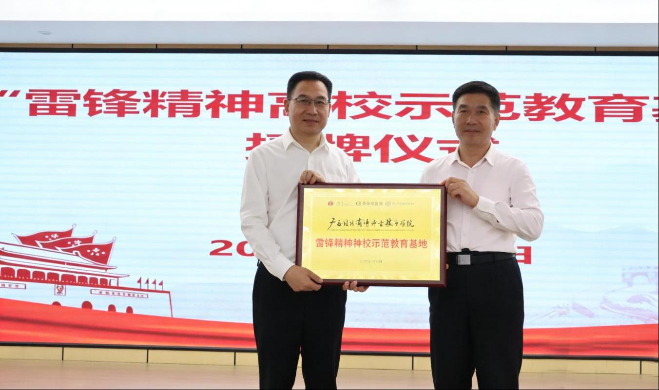授牌仪式上,甘忠指出,基地的建立是推动雷锋精神融入校园文化建设、深化商科人才培养的重要举措。卜金宝对我校雷锋精神教育工作给予充分肯定,勉励团员青年争做志愿服务先锋。随后,双方代表共同完成“雷锋精神高校示范教育基地”授牌。这不仅是对过往工作的认可,更标志着我校在构建长效化、系统化雷锋精神育人体系上迈出了里程碑式的一步。