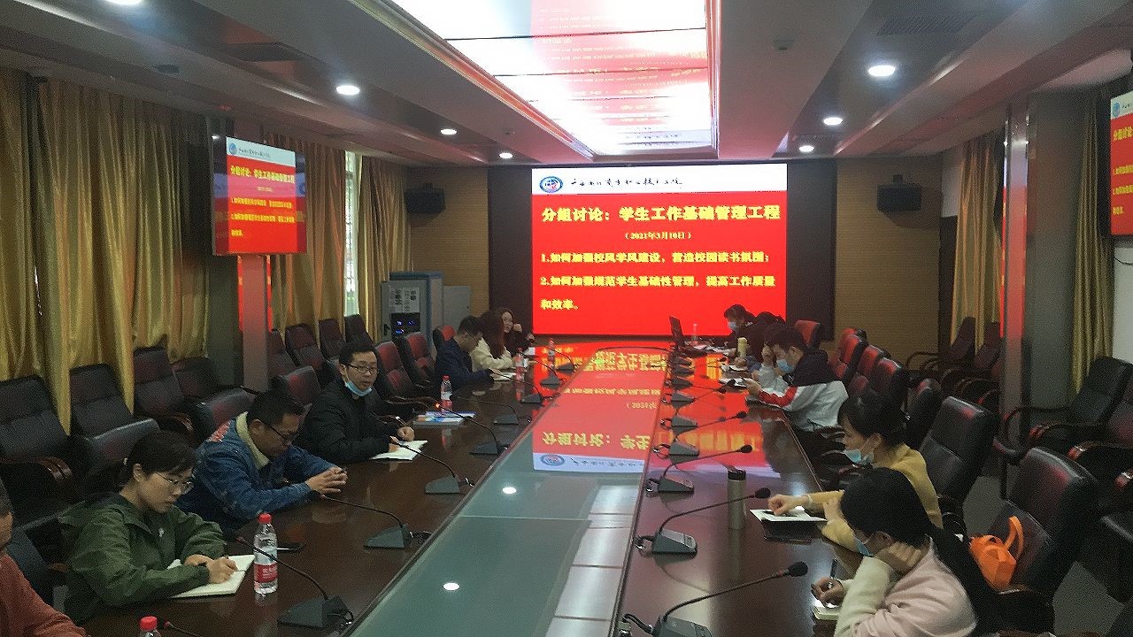 培训中,学生工作处和团委分别对2021年学生工作和团的建设要点进行了总体部署。全体学生管理人员围绕学生工作“六大工程”分组进行专题讨论,针对如何提升管理能力、加强校风学风建设、营造读书氛围、推进辅导员队伍建设、加强和改进大学生思想政治教育、发挥辅导员作用推进学生心理健康教育工作、落实心理问题学生“一案一策”、围绕人才培养和专业建设开展团学活动等方面的内容,集思广益,提出工作中存在问题、工作难点和下一步工作意见建议,不断充实和丰富了2021年学生管理和团的建设工作计划。