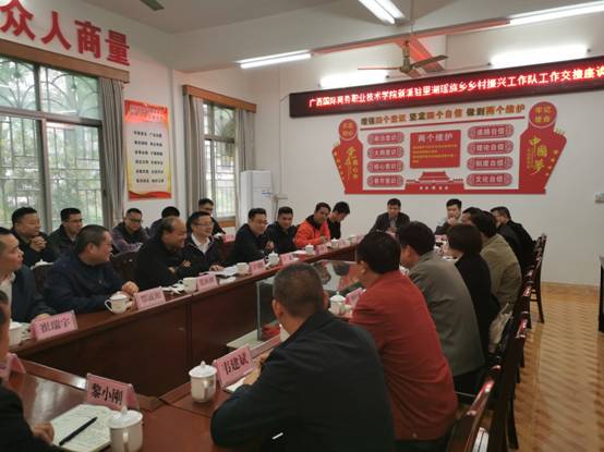当天,在里湖瑶族乡组织召开了广西国际商务职业技术学院新派驻里湖瑶族乡乡村振兴工作队工作交接座谈会。
