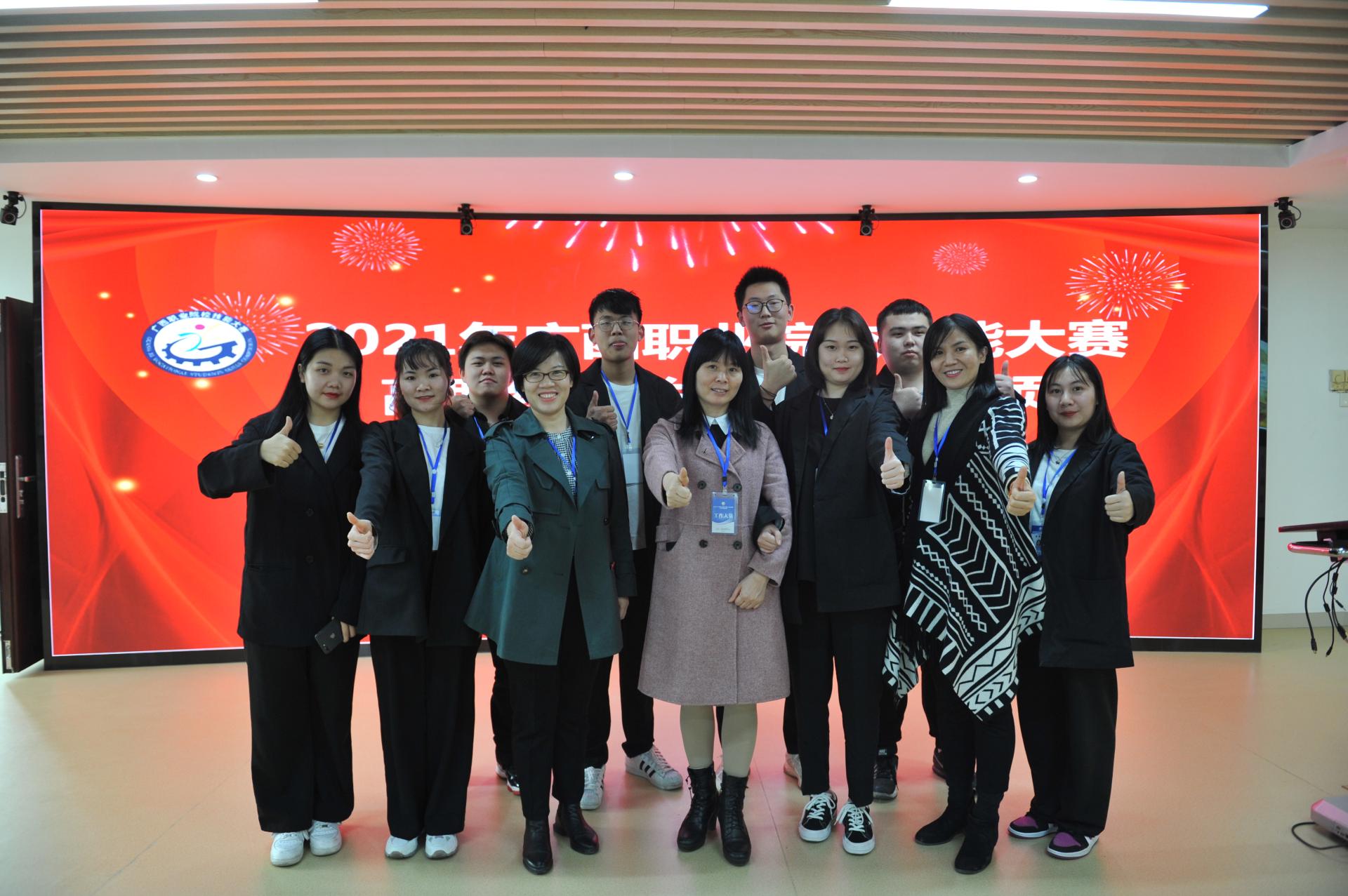 通过职业技能竞赛赛场的比拼,同学们在指导老师的精心指导和教育下,赛出风格,赛出水平,展现出广西国际商务职业技术学院作为自治区高水平专业建设院校的水准,向社会交出了一份满意的答卷。
