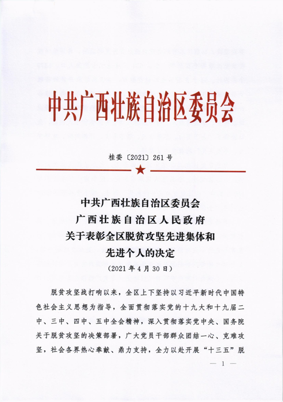 自脱贫攻坚战打响以来,全区上下坚持以习近平新时代中国特色社会主义思想为指导,全面贯彻落实党的十九大和十九届二中、三中、四中、五中全会精神,深入贯彻落实党中央、国务院关于脱贫攻坚的决策部署,广大党员干部群众团结一心、克难攻坚,社会各界热心奉献、鼎力支持,全力以赴开展“十三五”脱贫攻坚战,以前所未有的力度向绝对贫困发起总攻,共同推动脱贫攻坚战取得全面胜利。我院脱贫攻坚工作队队长,里湖瑶族乡甲木村第一书记,学生工作部(处)副部(处)长、武装部副部长鄂诚湘,被自治区党委、自治区人民政府授予“全区脱贫攻坚先进个人”荣誉称号。