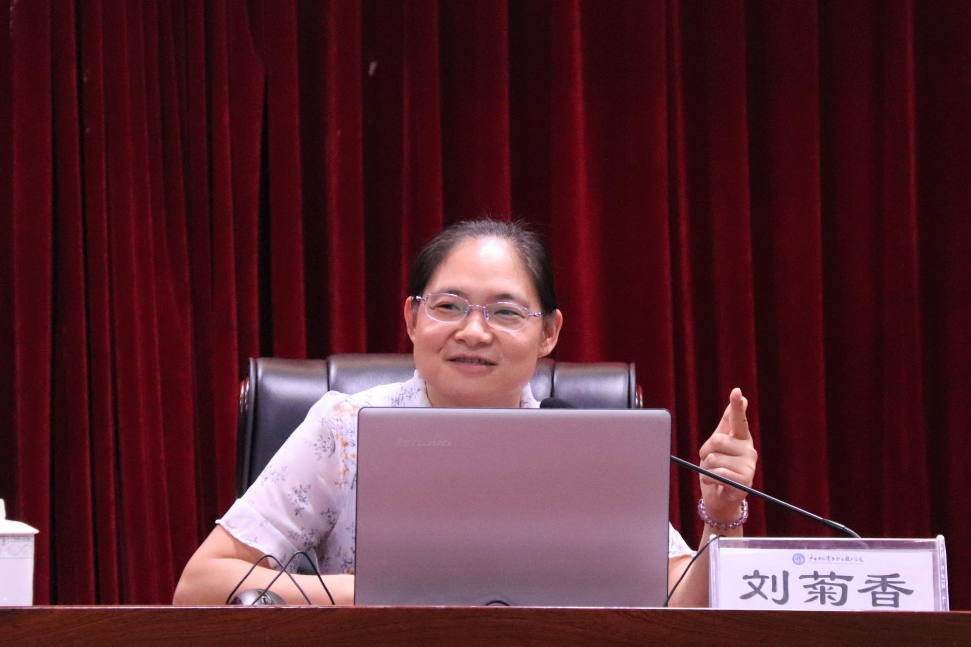 在当前全国上下深入学习贯彻习近平总书记“七一”重要讲话精神之际,为进一步营造浓厚的学习氛围,推动党史学习教育向纵深发展,根据学校党委党史学习教育工作安排,学校于10月12日下午在图书馆11楼学术报告厅,举办了2021年第三期新时代文明实践所专家大讲堂暨学习贯彻习近平总书记“七一”重要讲话精神专题宣讲,邀请自治区党委特聘讲师团专家,广西社会主义学院多党合作教研部教授、广西政协理论研究社院站负责人刘菊香教授为我们作《奋斗百年路 启航新征程——学习贯彻2021年习近平总书记“七一”重要讲话精神》专题宣讲。学校党委书记谢云、党委副书记青增计出席,学校全体中层干部、在职教职工党员、部分入党积极分子参加。