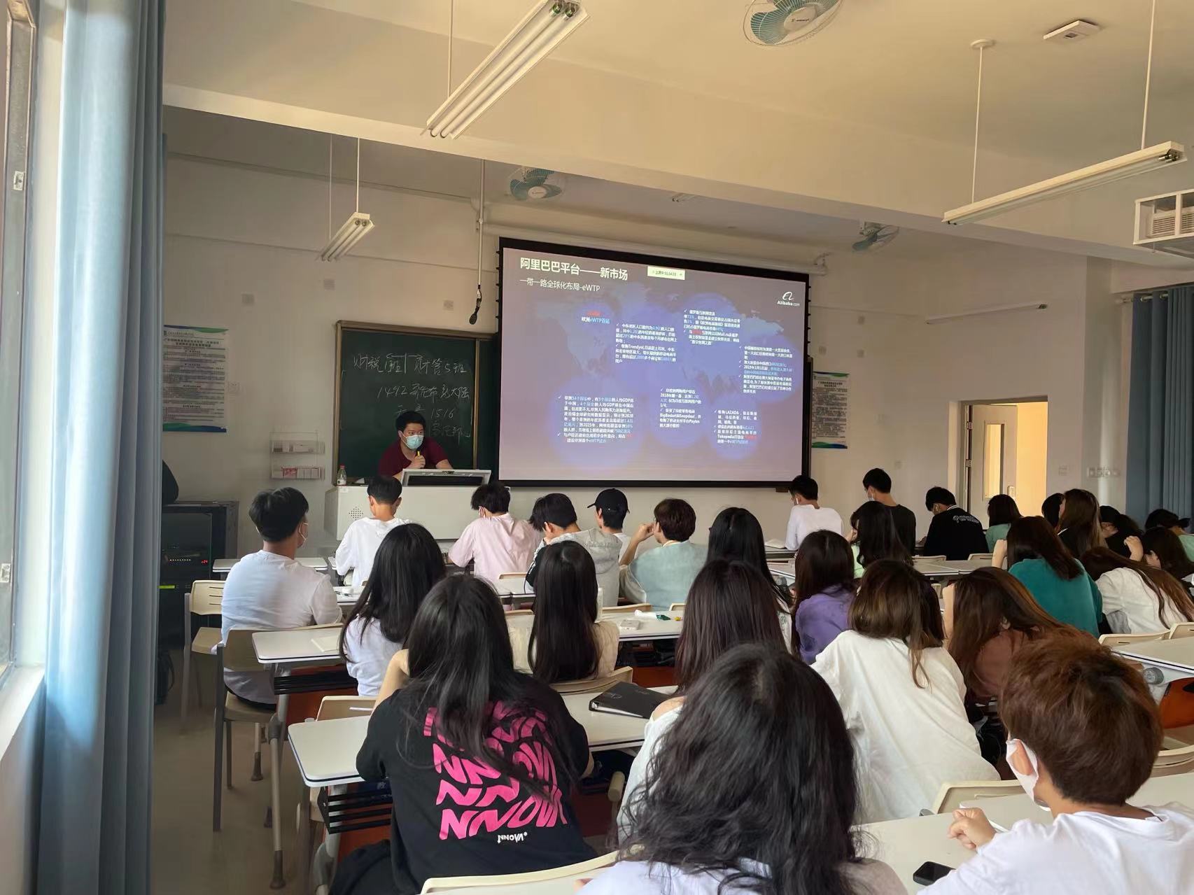 课堂上,资深产业导师项悦雷结合自身履历、行业动向,深入浅出的为同学们进行了跨境行业2B主流跨境电商平台及推广渠道、概念等内容,如阿里国际站、1688、海外独立站、海外社媒及渠道落地到企业中的管理实操与运营思路案例,给予学生相关行业就业方向分享。