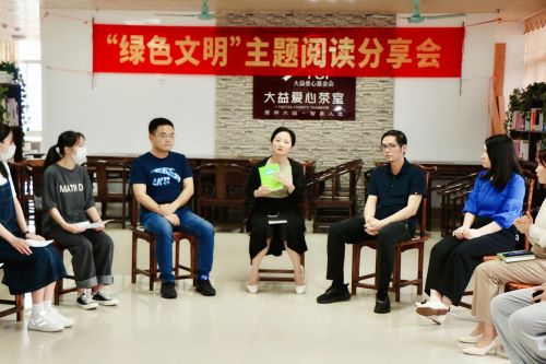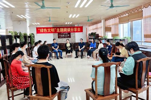 为深入贯彻落实习近平生态文明思想,提高师生生态文明素养,创建绿色校园,2022年5月,图书馆开设了“绿色文化”主题书展,并于13日下午,联合后勤基建管理处、校团委在图书馆三楼大益茶室举办了“绿色文化”主题阅读分享会。图书馆馆长万海鸾、后勤基建管理处副处长苏杰、图书馆副馆长冯世暄与校团委干事张婉莹出席了阅读分享会,共有师生读者20人参加了此次活动。