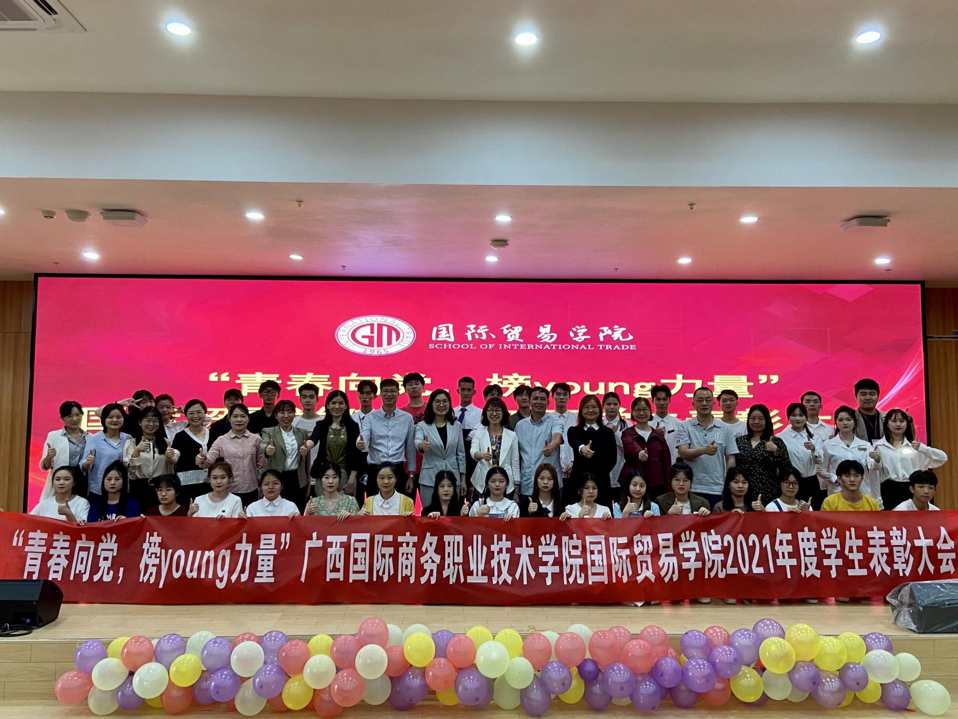 5月17日,国际贸易学院“青春向党,榜young力量”2021年度学生表彰大会在东盟校区师生活动中心三楼报告厅隆重举行,大会对过去一年表现突出的先进集体和优秀个人予以表彰,激励同学们爱国荣校、勇毅前行,谱写新时代奋斗的绚丽篇章。国际贸易学院党总支书记邓菲、院长邓海涛及班子成员出席会议,教师代表、辅导员以及2020、2021级学生代表参加本次大会。