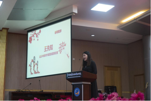 学生才艺表演结束后,首先由王先知代表企业方致词,她对本年度获奖的全体同学表示祝贺,并感谢学校对武汉中部对外集团的信任和支持,希望同学们能够戒骄戒躁,再接再厉。同时针对即将步入顶岗实习阶段的2020级同学就目前的实习就业形势做出了分析以及指导。
