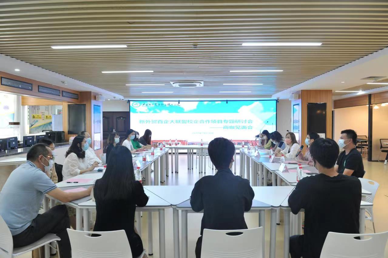 会上,邓海涛介绍了我校高水平跨境商务专业群的建设,在分析企业岗位的基础上,挖掘岗位典型工作任务,融合1+X职业技能证书,设计教学内容与教学模式,实现岗课赛证融通综合育人;“企业联盟”+“工作室”的模式下的新外贸百企大联盟提供了课程体系与职业标准对接、校企联合培养人才的平台。随后,吴薇与韦萍分别介绍了企业的主要业务,业务内容契合人才培养的需求,可为校企联合育人提供真实的业务环境和相关资源。