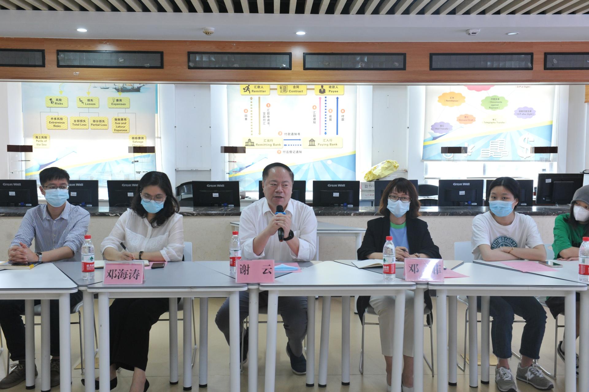 为汇集各方资源开展产教融合、校企合作工作,构建企业全要素业务场景,建立与企业同步的贸易运营环境,5月18日上午,国际贸易学院召开了新外贸百企大联盟校企合作项目专题研讨会——商咖见面会。学校党委书记谢云出席会议,国际贸易学院党总支书记邓菲、国际贸易学院院长邓海涛、国际贸易学院副院长吴涛、广西新秩序网络科技有限公司总经理吴薇、广西西有季科技发展有限公司总经理韦萍、国际贸易学院专业教师及学生代表参加会议。
