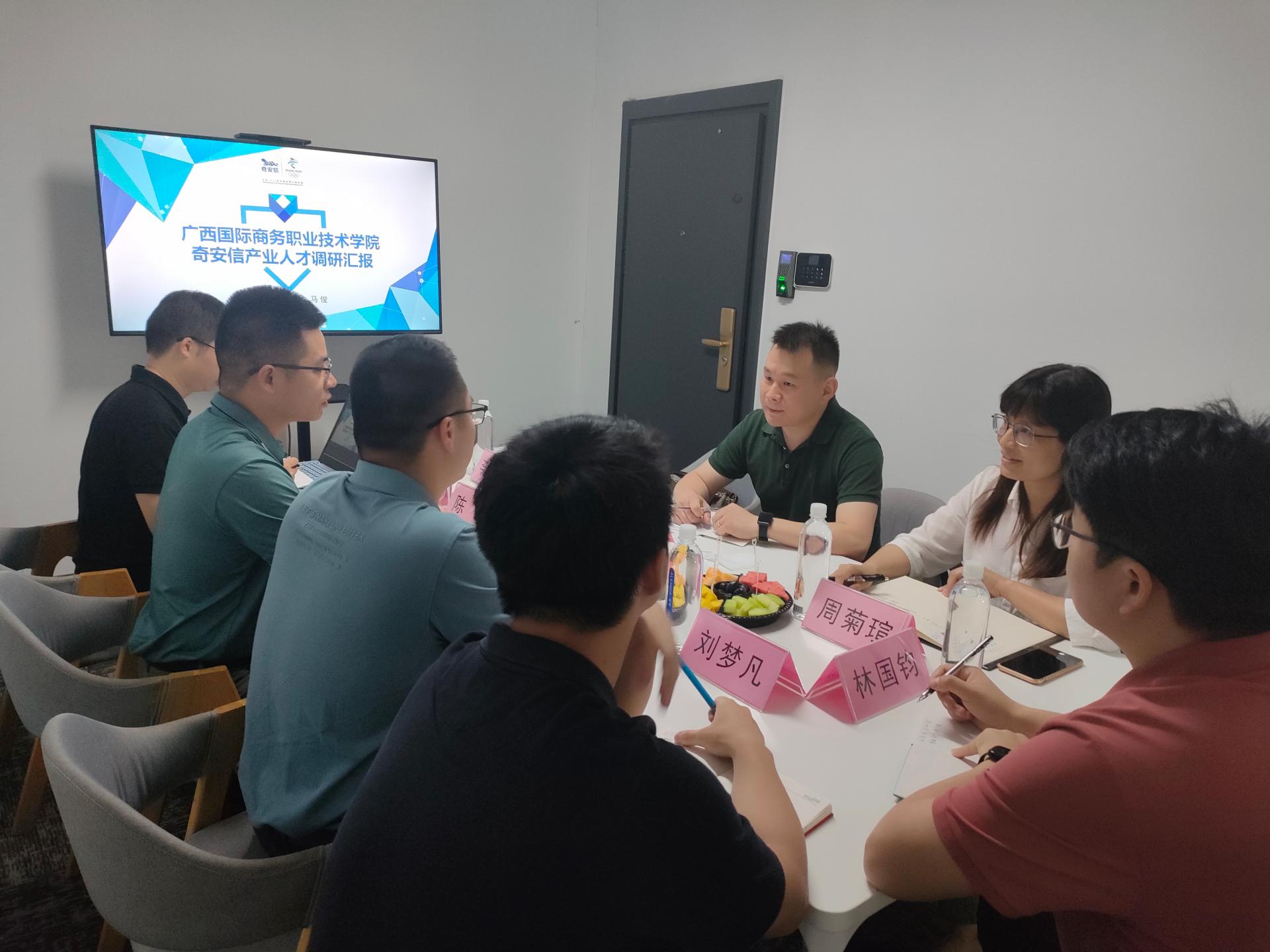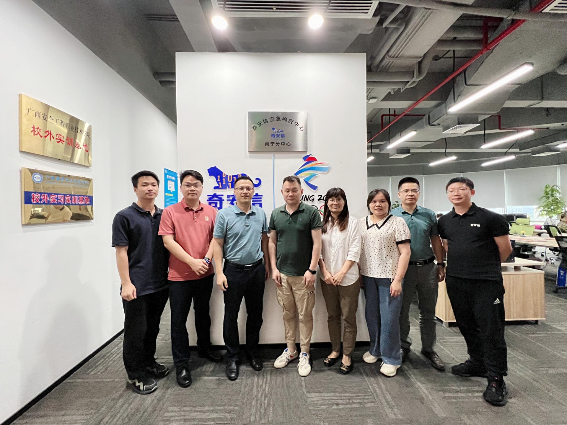 为了进一步拓宽毕业生就业渠道,加强与用人单位和校友的联系,5月20日下午,智能与信息工程学院党总支副书记李冬、副院长周菊瑄、就业干事李美丽赴奇安信科技集团股份有限公司广西分区走访调研,奇安信科技集团股份有限公司广西分区总监陈敏、副总经理蒙文庆、行业经理林国钧、行业工程师马俊及校友代表刘梦凡参与了本次调研交流座谈会。