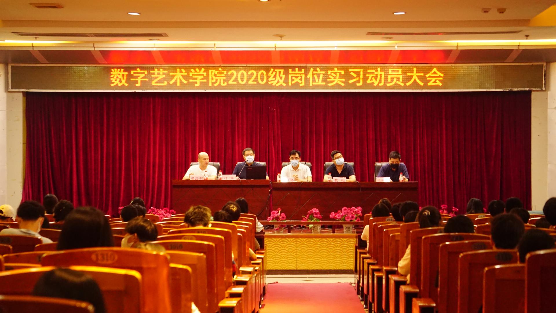 5月27日,数字艺术学院在图书馆11楼学术报告厅召开2020级学生岗位实习动员大会。学院党总支副书记黄恒拾、党总支专职副书记敬礼、副院长叶军、中部集团副总经理王明智、学工负责人黄静、浙江网竞学工负责人胡璟、各级辅导员及2020级学生共三百余人参加会议(另设两个分会场实时转播)。会议由实习实训室主任禤品钏主持。
