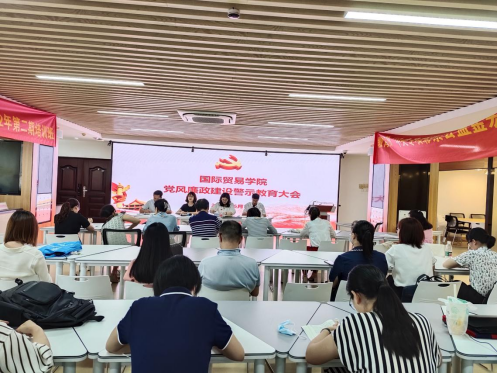 为贯彻落实学校党委“七个一”校园廉洁宣传教育工作有关要求,深入开展警示教育,6月7日下午,国际贸易学院在图书馆8楼大厅召开党风廉政建设警示教育大会,学院全体教职工参加会议,党总支书记邓菲主持会议。