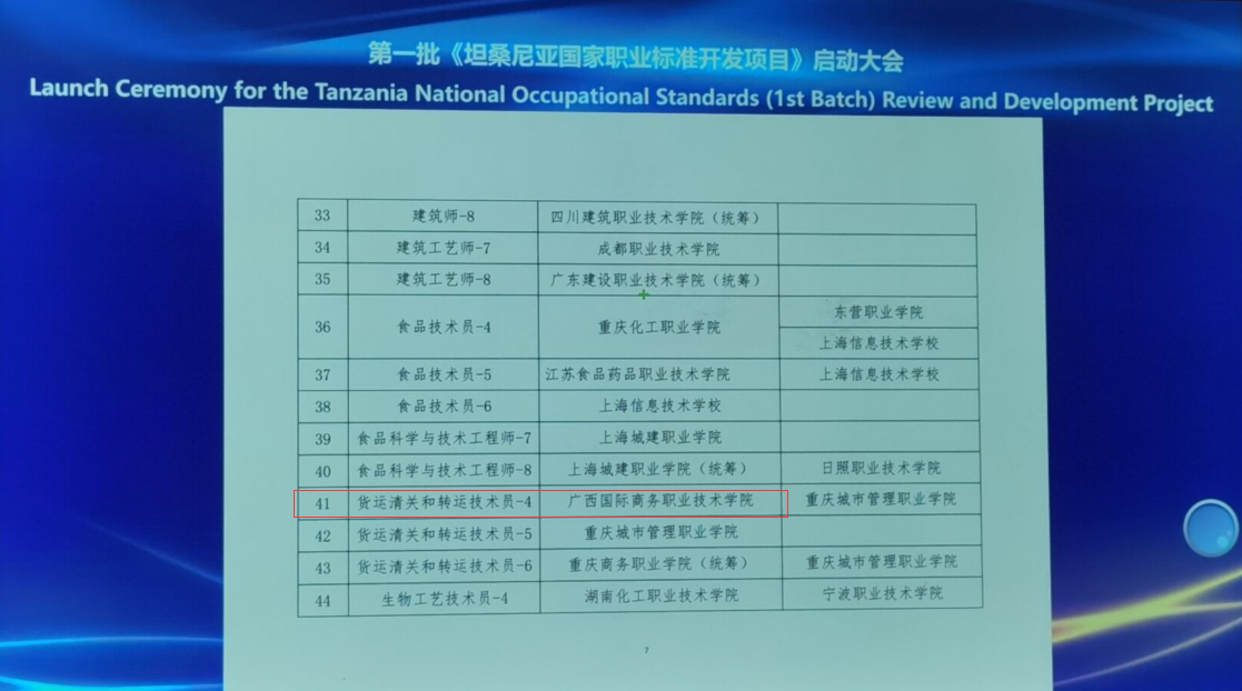 此次坦桑尼亚国家职业标准开发项目,第一批立项建设单位共有43所中国职业院校,涉及54个不同级别的职业标准。我校牵头第41项货运清关和转运技术员4级标准开发。这是中国首次直接为一个非洲国家批量式开发和修订职业标准,对中国职业教育的国际化发展有及其重要的意义,也是我校“走进非洲”的一个重要里程碑。