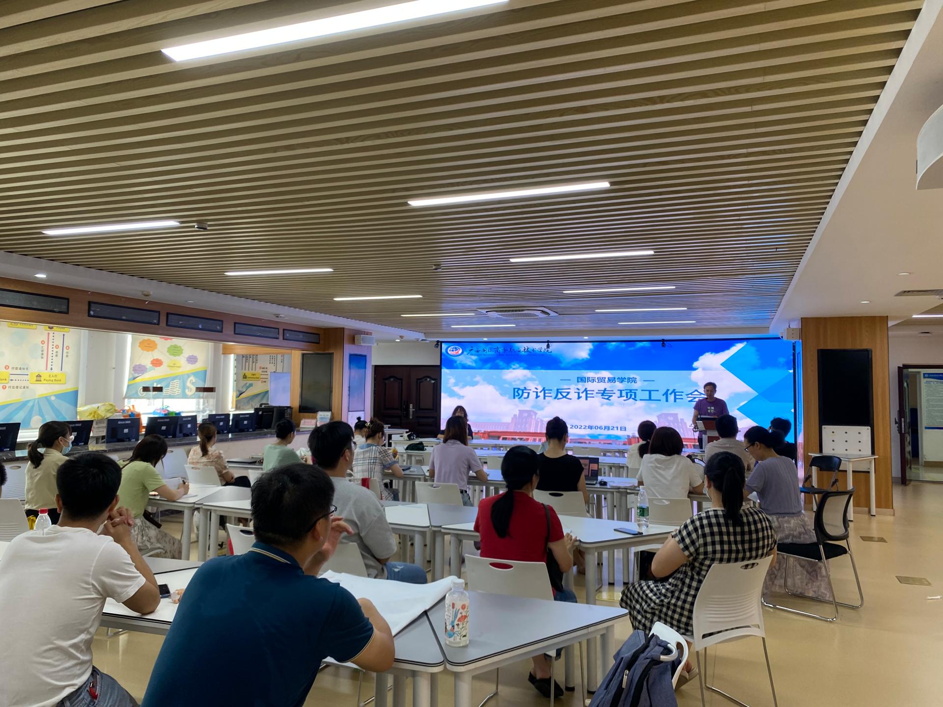 为有效防范校园电信网络诈骗,增强我校学生识诈防诈意识和能力,维护和保障学生的人身和财产安全,6月21日下午,国际贸易学院在图书馆8楼召开防诈反诈专项工作,国际贸易学院党总支书记邓菲出席会议,2019、2020、2021级专职(兼职)辅导员参加会议。会议由党总支专职副书记杨明主持。