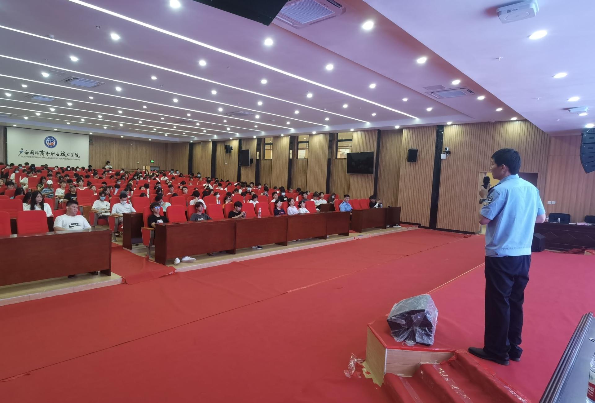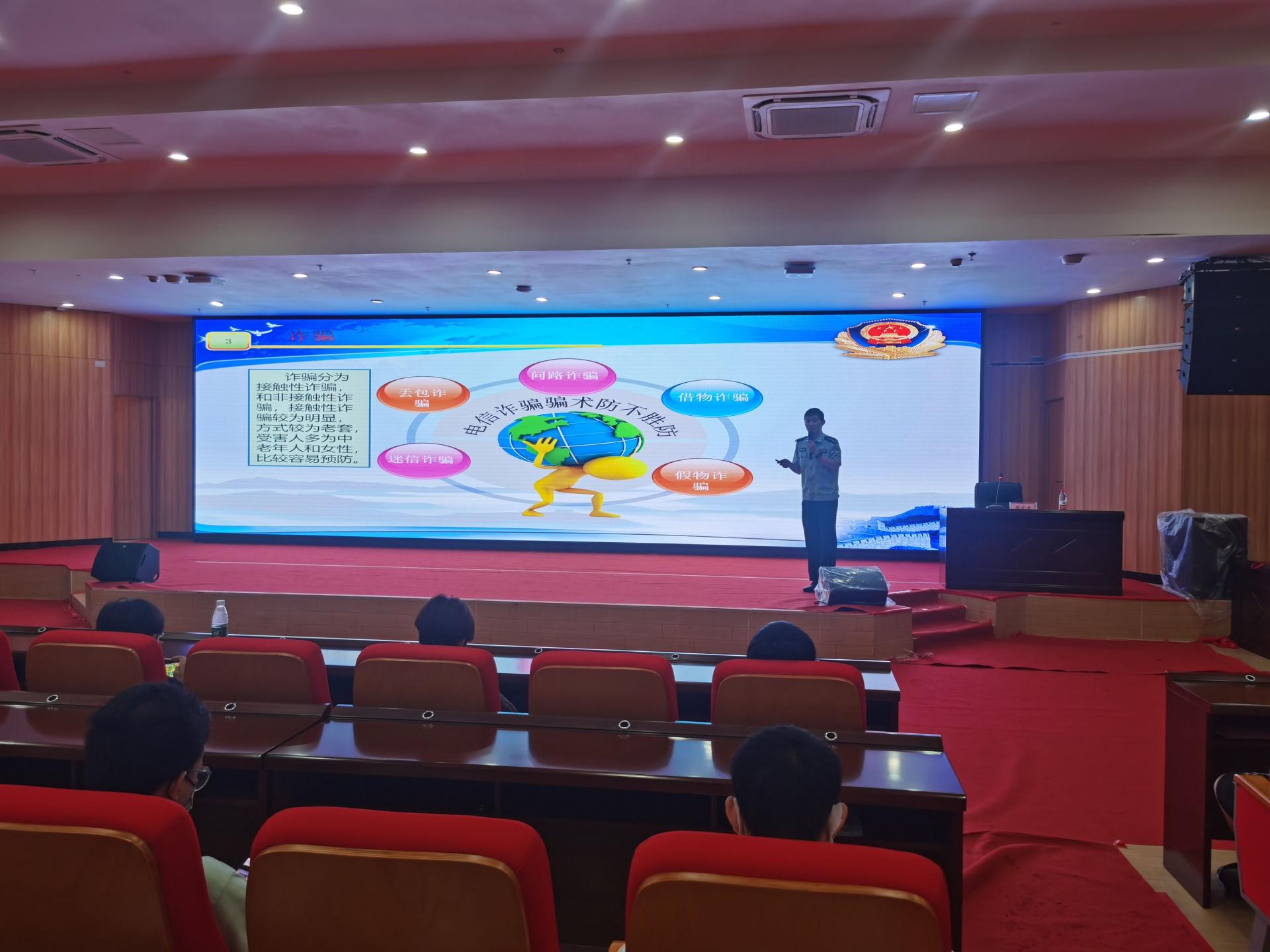 为加强我校大学生安全意识,防范电信网络诈骗,提高自我安全保护意识和能力,6月24日学校在东盟校区师生活动中心三楼报告厅举办了防范电信网络诈骗宣传教育讲座。本次讲座邀请东盟经开区里建派出所李元生警官到校进行授课,共有近300余名师生参加了讲座。