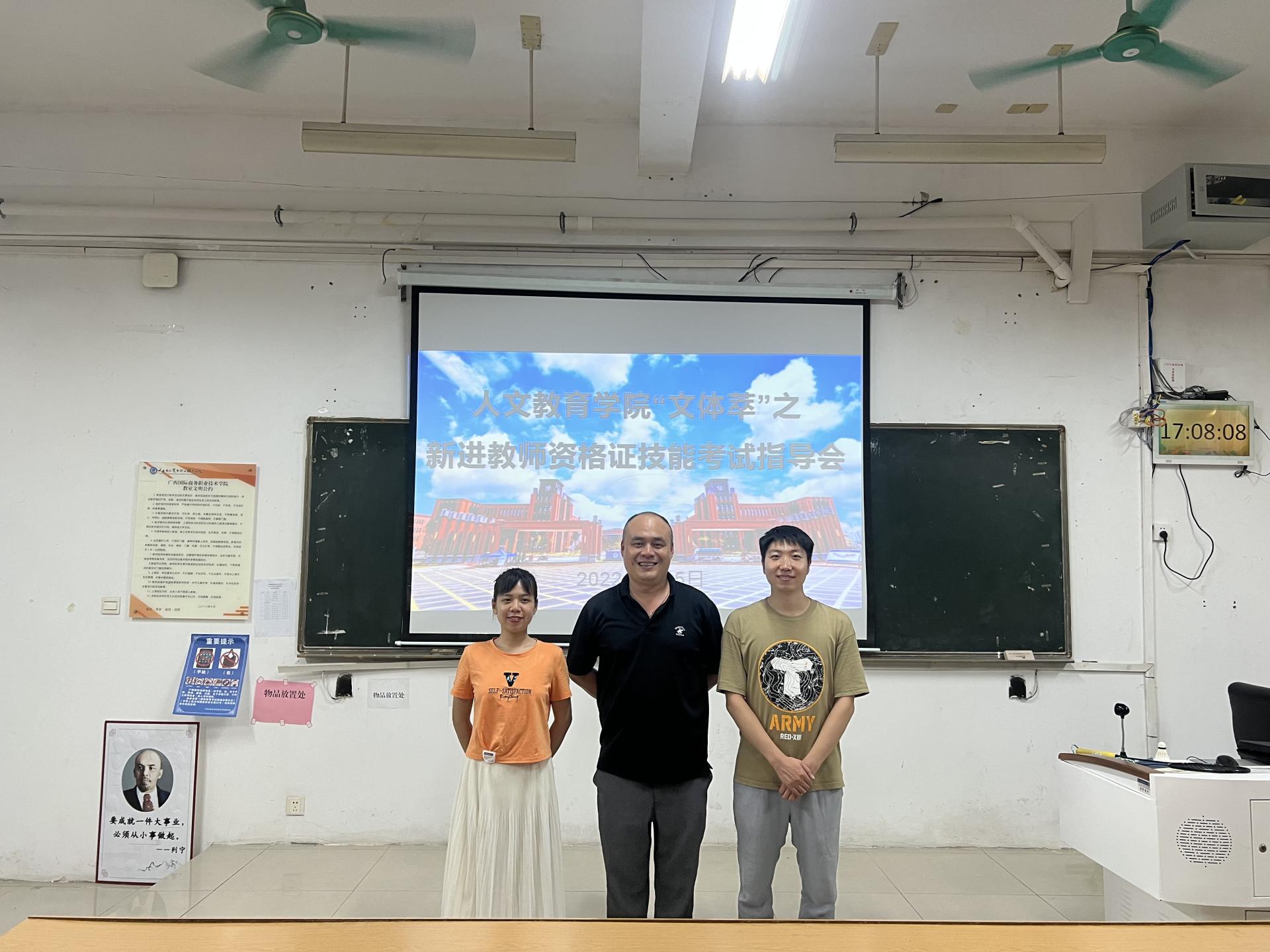 根据自治区招生考试院《2022年广西高等学校教师资格教学技能考试公告》要求,为了扎实推进学校“双高计划”建设,提升新进教师教学水平,提高高校教师资格证技能考试通过率,7月5日下午,人文教育学院为2021年以来入职的教师举行了教师资格证技能考试指导会。