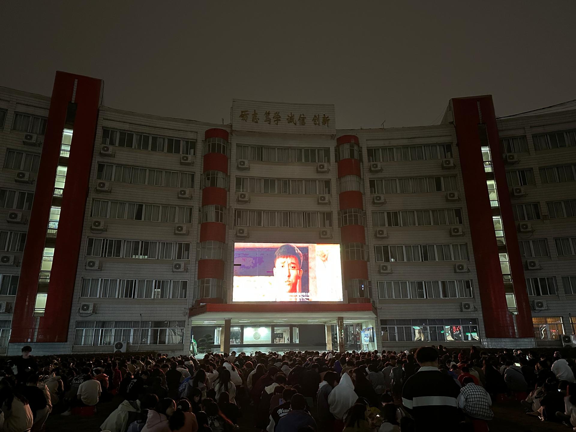 数字艺术学院师生在升旗广场观看电影《青春雷锋》