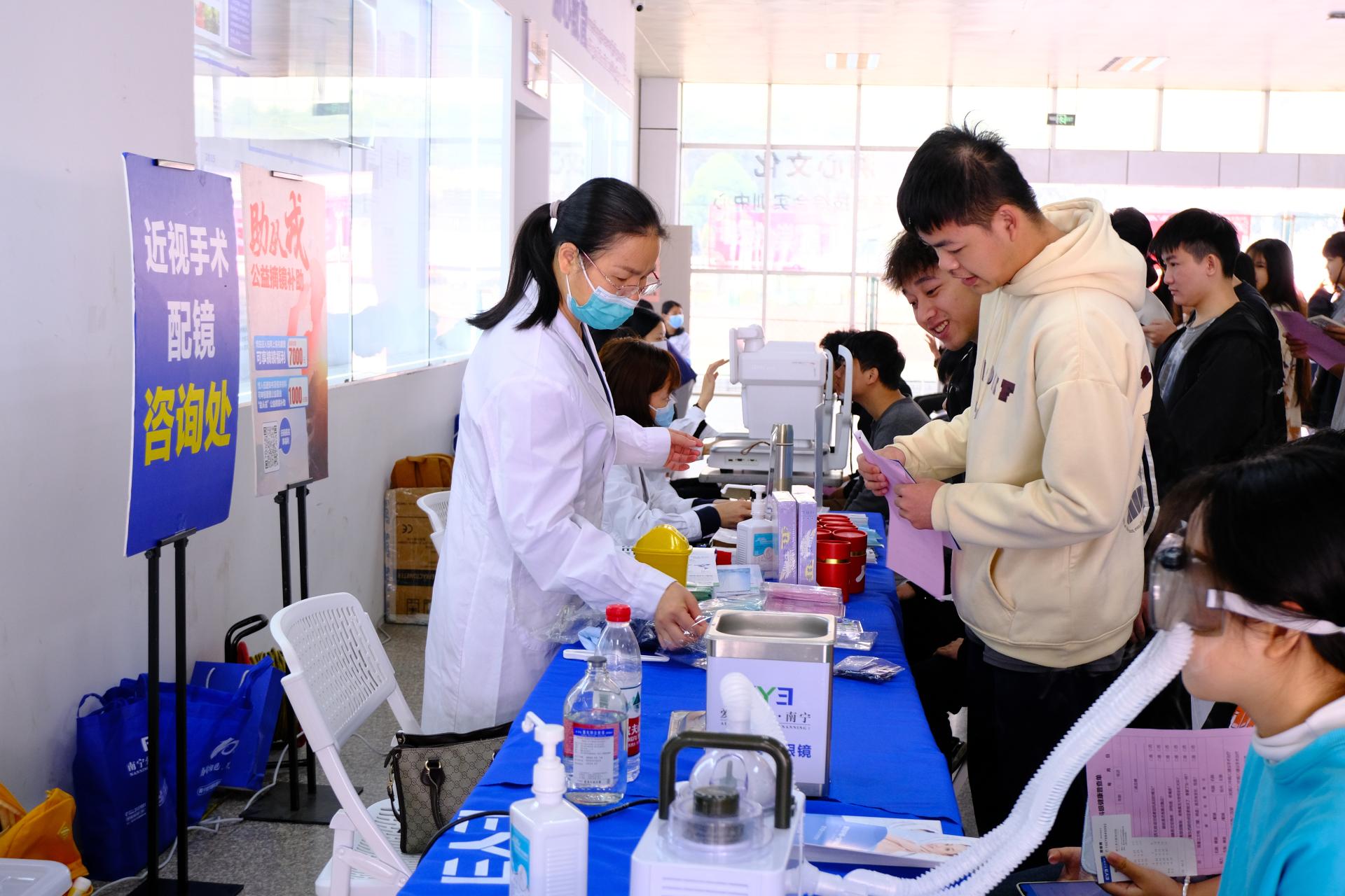 南宁爱尔眼科医院为数艺师生们提供眼镜清洗服务