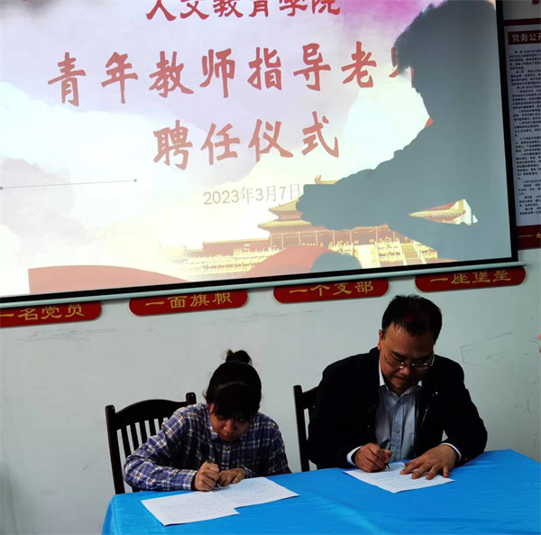 为加强学校教师队伍建设,发挥骨干教师的传帮带作用,帮助青年教师提高教育教学工作能力,促使其快速成长为“五特”教师,3月7日下午,人文教育学院在大学路校区3-410办公室举行“青蓝相接传帮带 携手共进促成长”拜师签约仪式。人文教育学院全体教职工参加会议,会议由学院院长张海涛主持。
